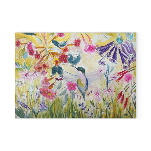 Planche à découper en verre Colibri dans le jardin de fleurs en tube