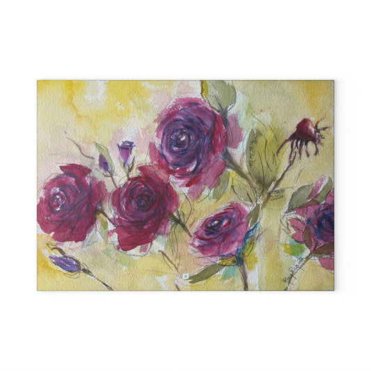 Planche à découper en verre roses rouges moelleuses