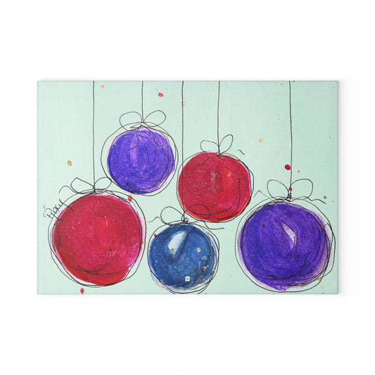 Planche à découper en verre Boules de Noël colorées 2