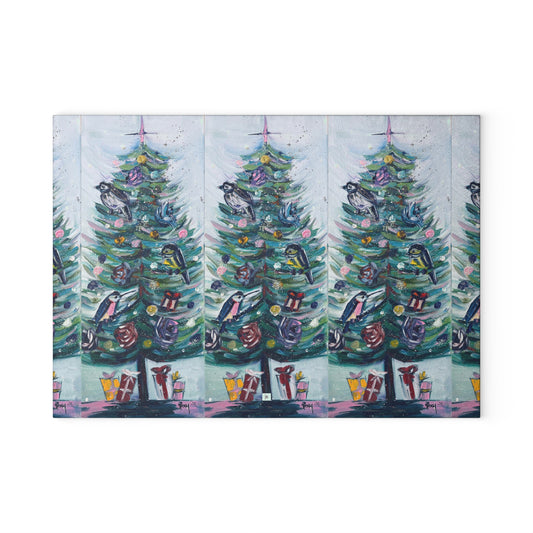 Planche à découper en verre Plumes-oiseaux festifs dans un arbre de Noël