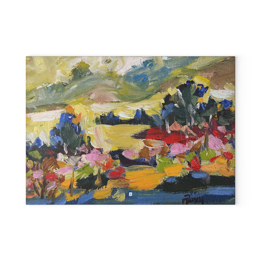 Planche à découper en verre paysage impressionniste pensées lointaines