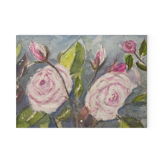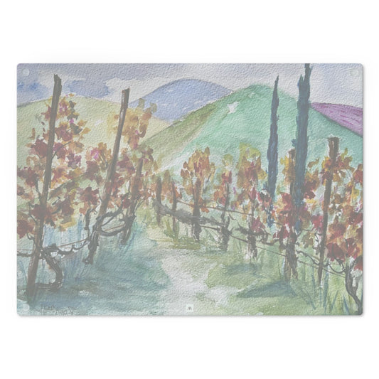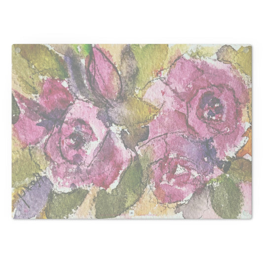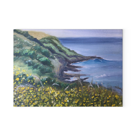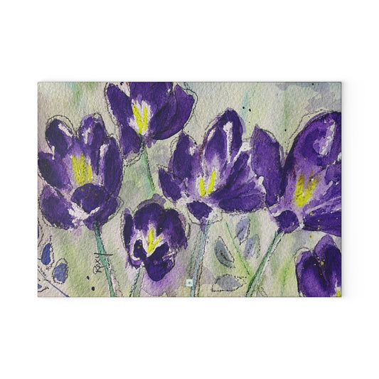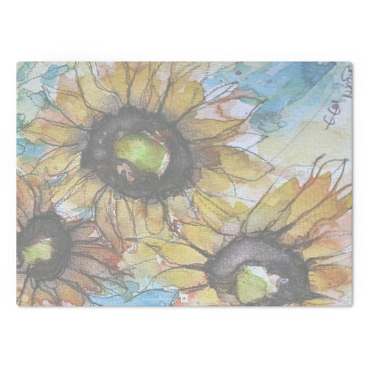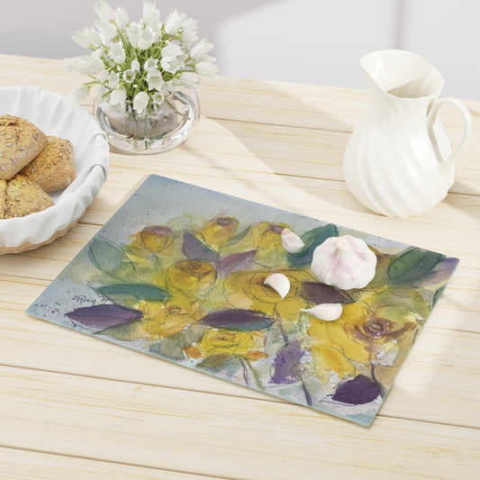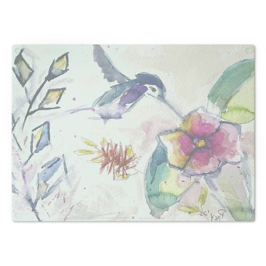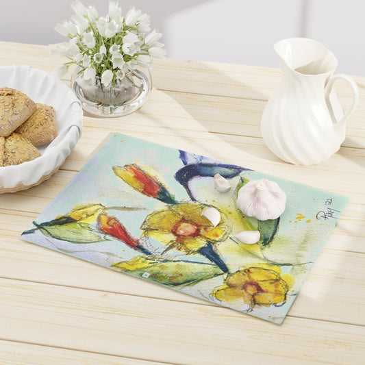 Planche à découper en verre Colibri dans des fleurs de tube jaune