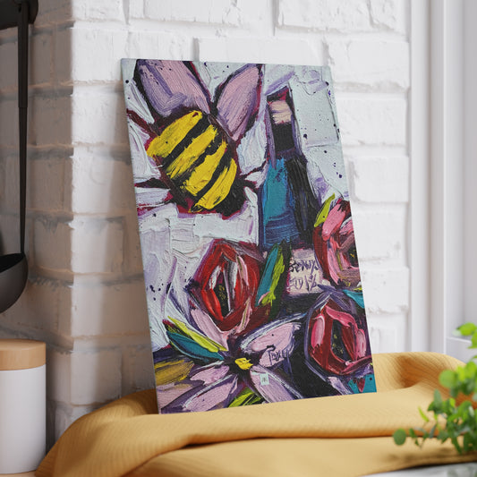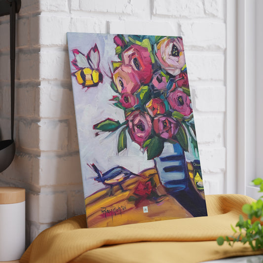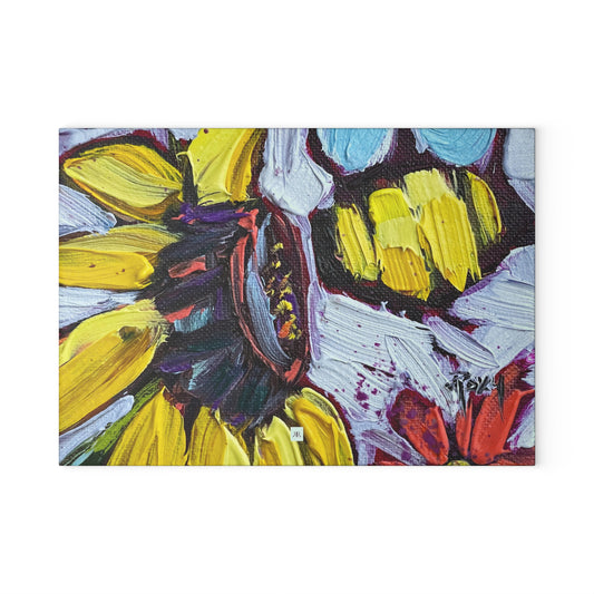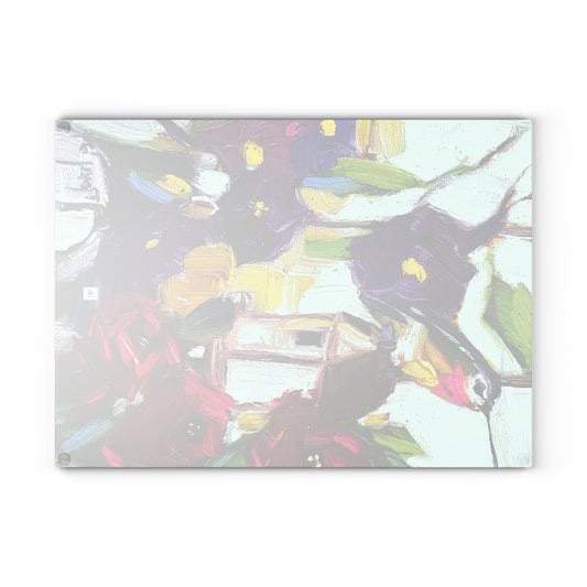 Abstract Roses and Yellow Warbler Bird Glass Cutting Board