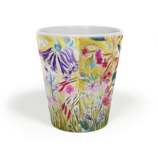 Tasse à latte Colibri dans un tube Flower Garden, 12 oz