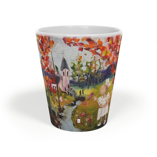 Isla au baptême (petite fille au paysage de l'église) Tasse à latte, 12 oz