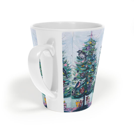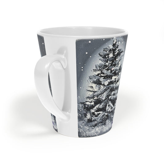 Tasse à café au lait avec arbre de Noël enneigé, 12 oz