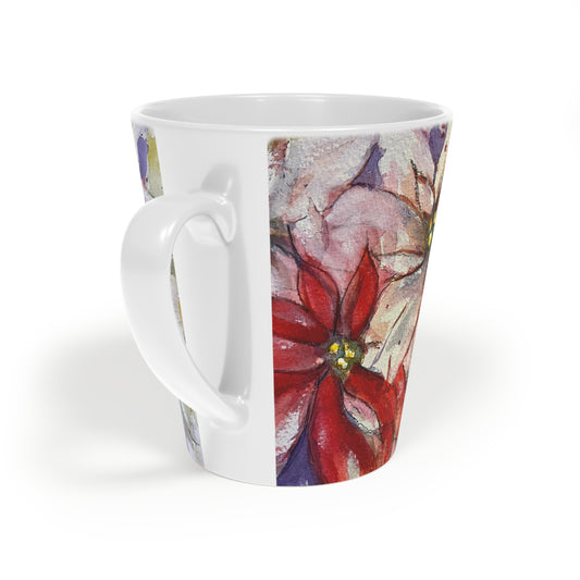 Tasse à latte à motif de poinsettias blancs, 12 oz