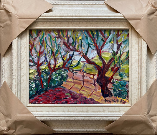 Breezy Trees Peinture à l’huile originale 9 x 12 Encadrée