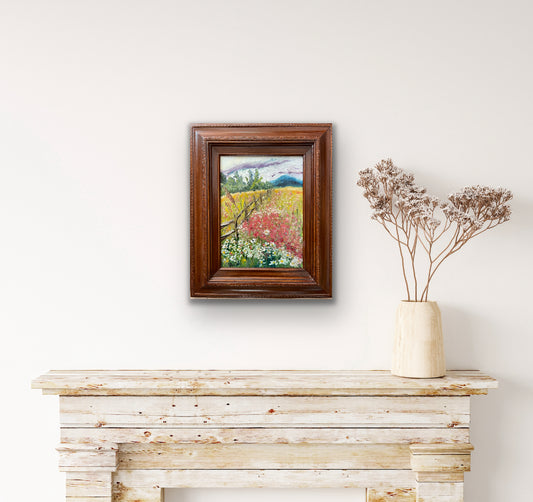 Après-midi vignes-peinture originale de paysage à l’huile 10 x 20 encadrée