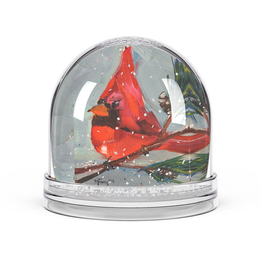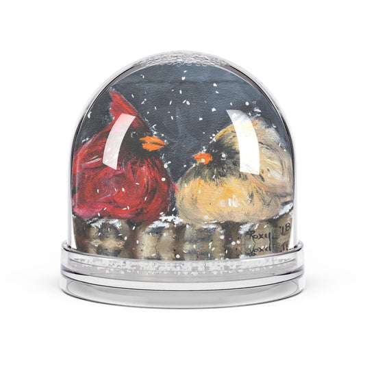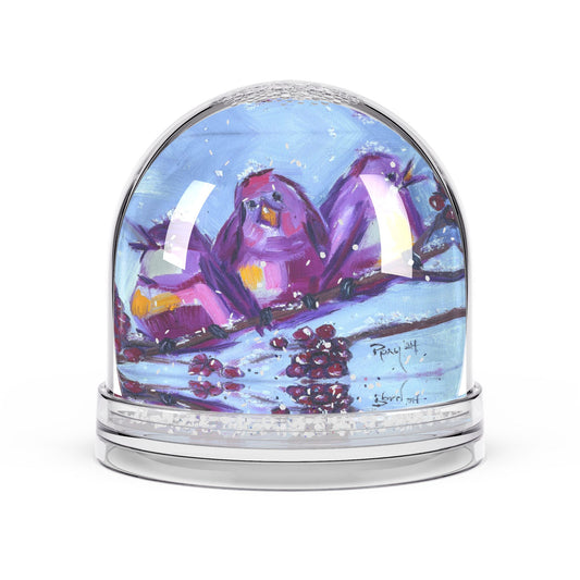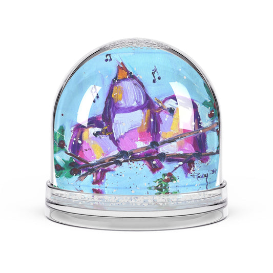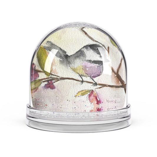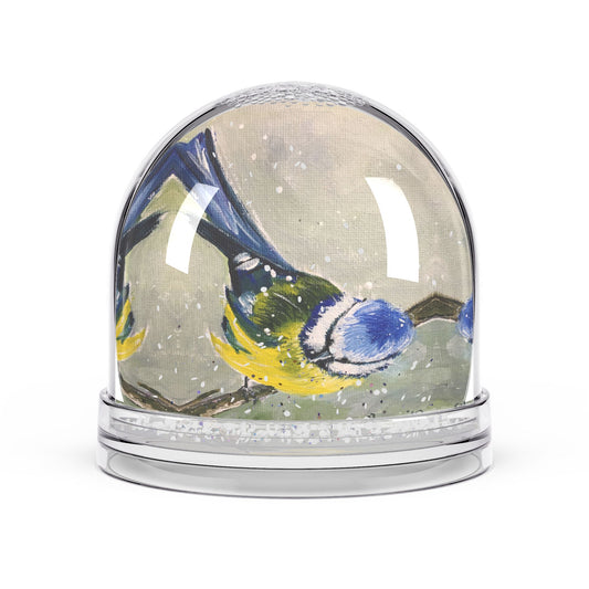 Snow Globe - Adorable Baby Tit Bird perched on a Snowy Branch