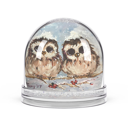 Snow Globe - Adorable Baby Owls with Snow on their Heads