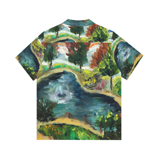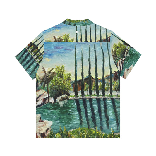 Temecula Duck Pond Original Oil Landscape Chemise hawaïenne pour hommes