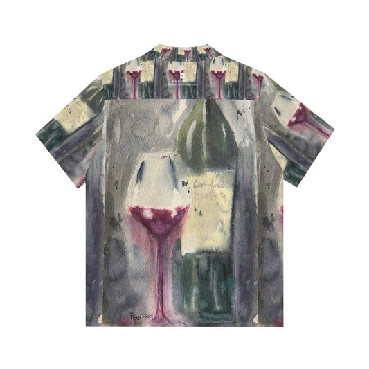 Wine Lover Original Loose Aquarelle GBV Bouteille et peinture sur verre Chemise hawaïenne pour hommes