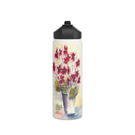 Bouteille d'eau en acier inoxydable Red Ivy Geraniums, couvercle standard