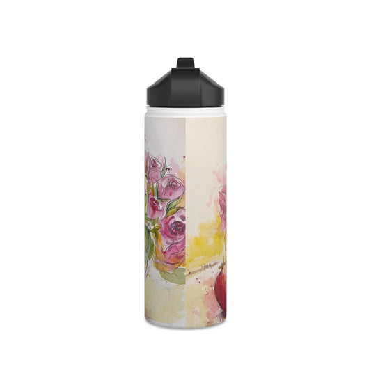 Bouteille d'eau en acier inoxydable roses et grenades, couvercle standard