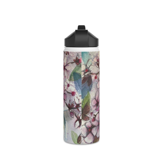 Colibri dans des fleurs de cerisier Bouteille d'eau en acier inoxydable, couvercle standard