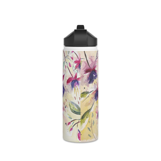 Bouteille d'eau en acier inoxydable Fluffy Fuchsias, couvercle standard
