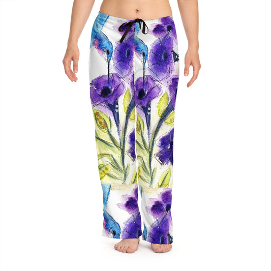 Pajama Pants - Hummingbird in Purple Tube Flowers- Women's Pajama Pants
