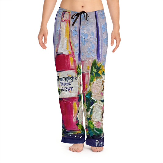 Pajama Pants - Pink Champagne and Peonies- Women's Pajama Pants