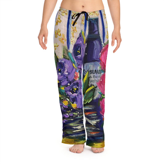 Pajama Pants - Corbeaux Wine and Lavender- Women's Pajama Pants