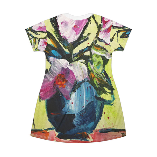 T-Shirt Dress (AOP)-Pink Gardenias
