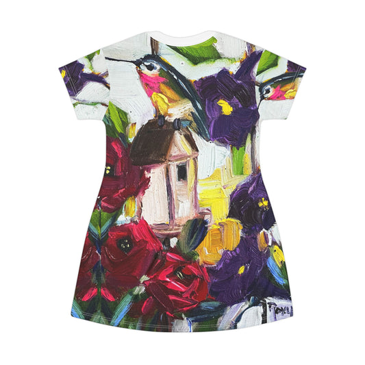 T-Shirt Dress (AOP)-Hummingbird by the Window