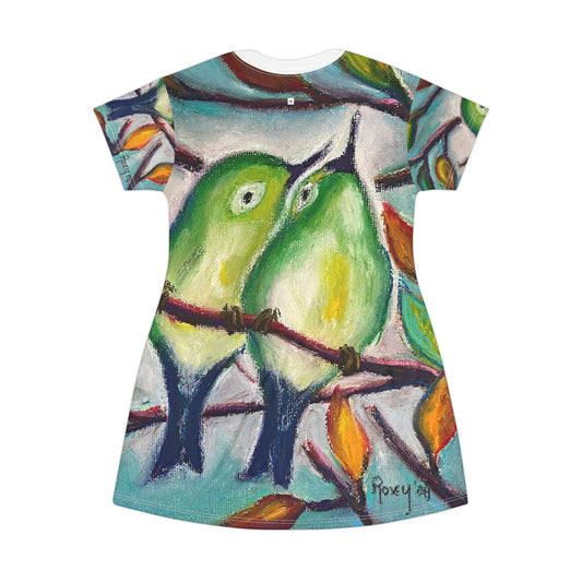 T-Shirt Dress (AOP)-Cuddling Warblers-Love Birds