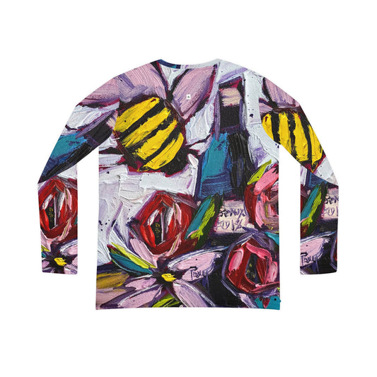 Bee Blooms Bee and Roses- All over Print Women's Long Sleeve V-neck Shirt