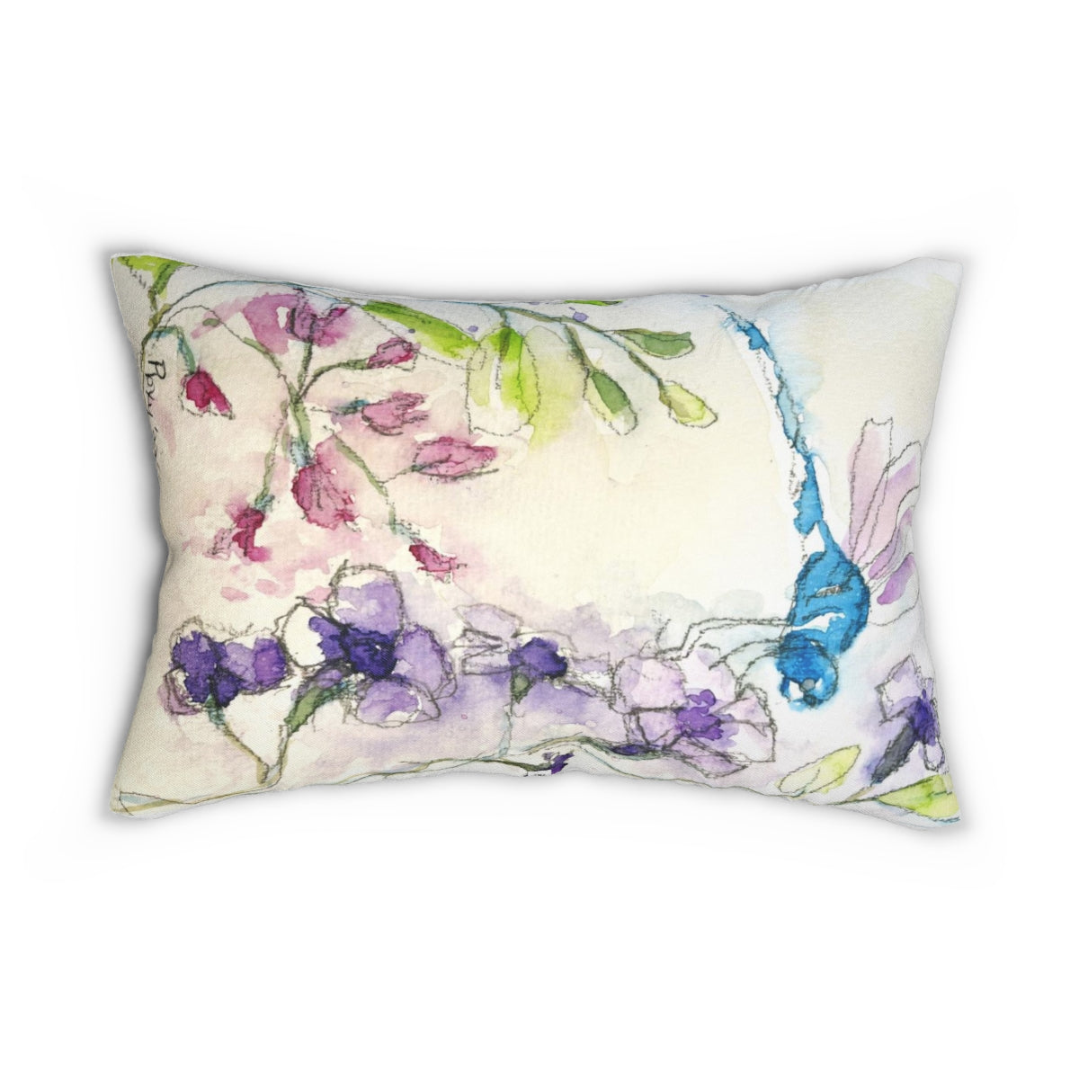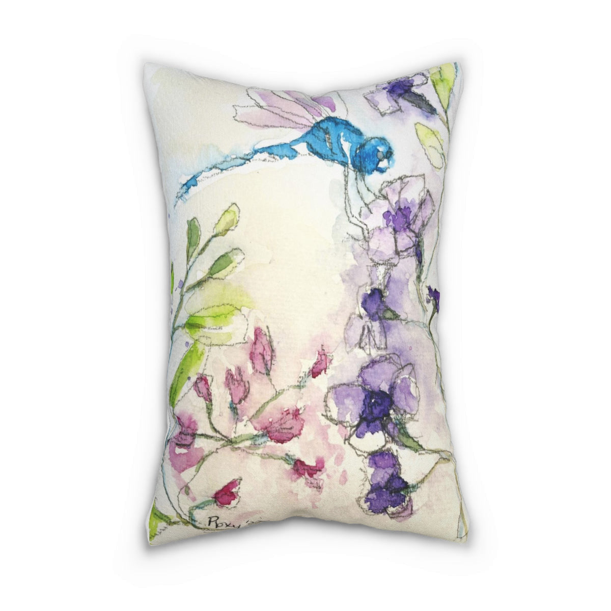 Coussin libellule sur des fleurs en tube violet