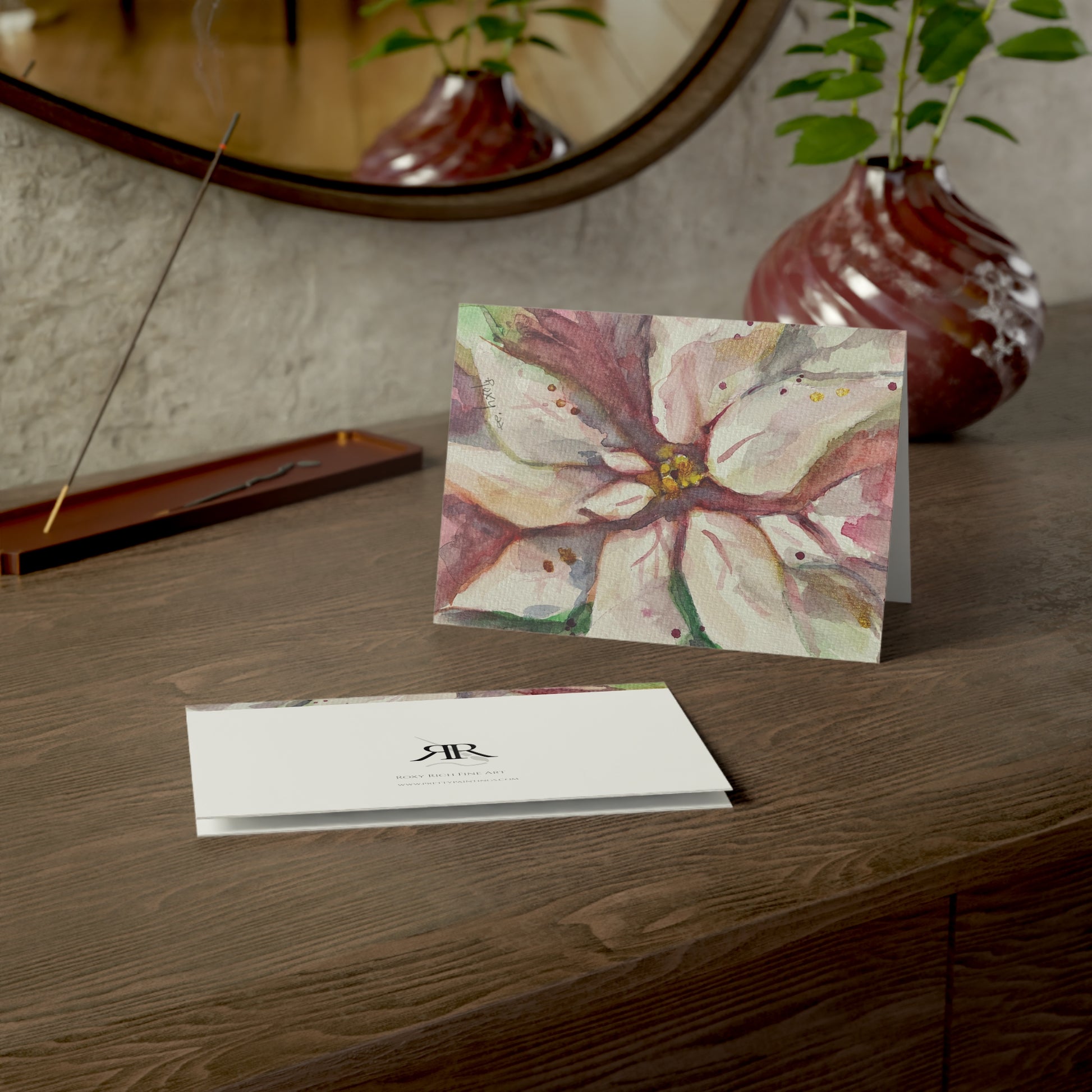 Cartes de vœux élégantes en poinsettia blanc avec « Joyeux vœux . »