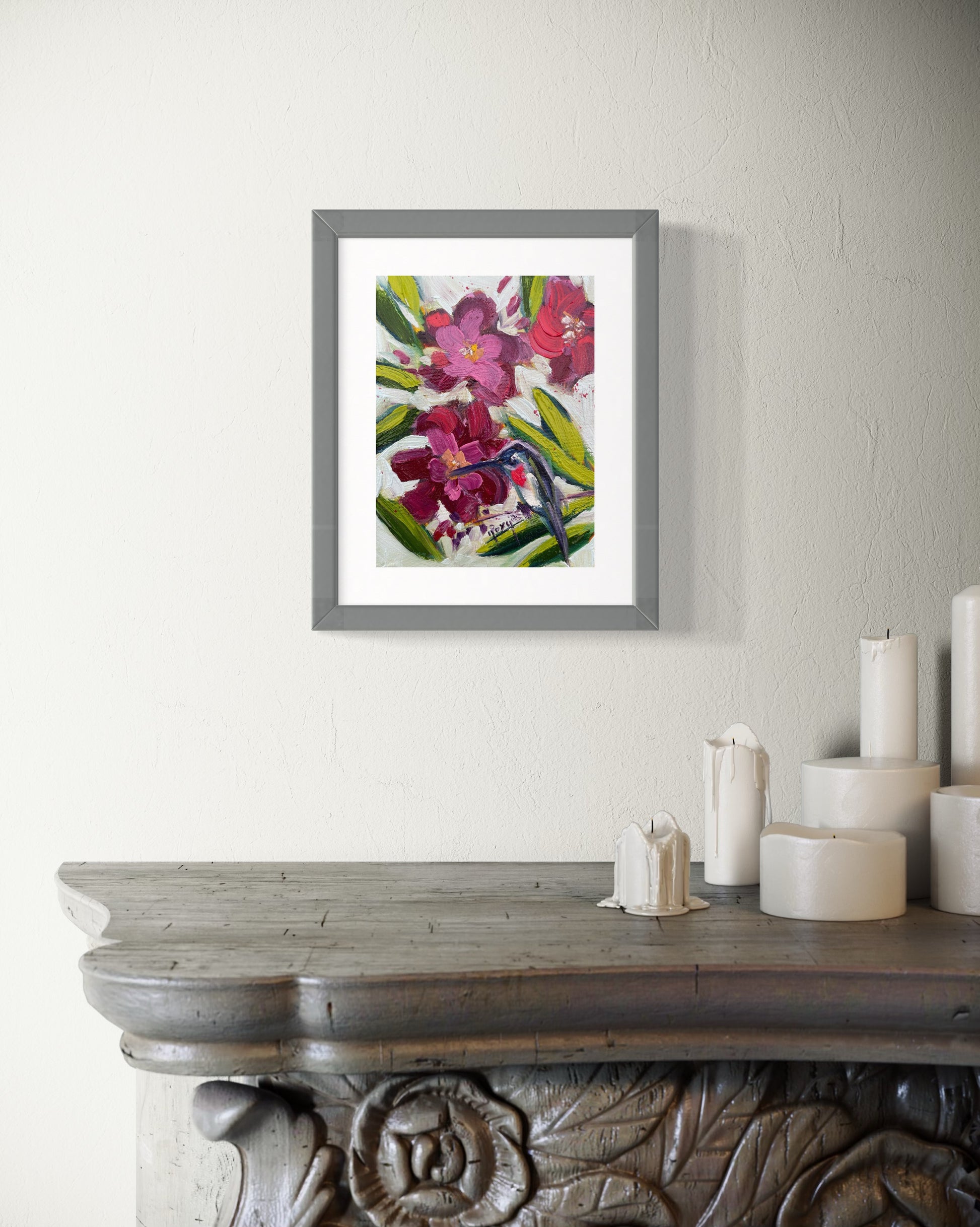 Original Oil Hummingbird in Oleander Flowers Painting