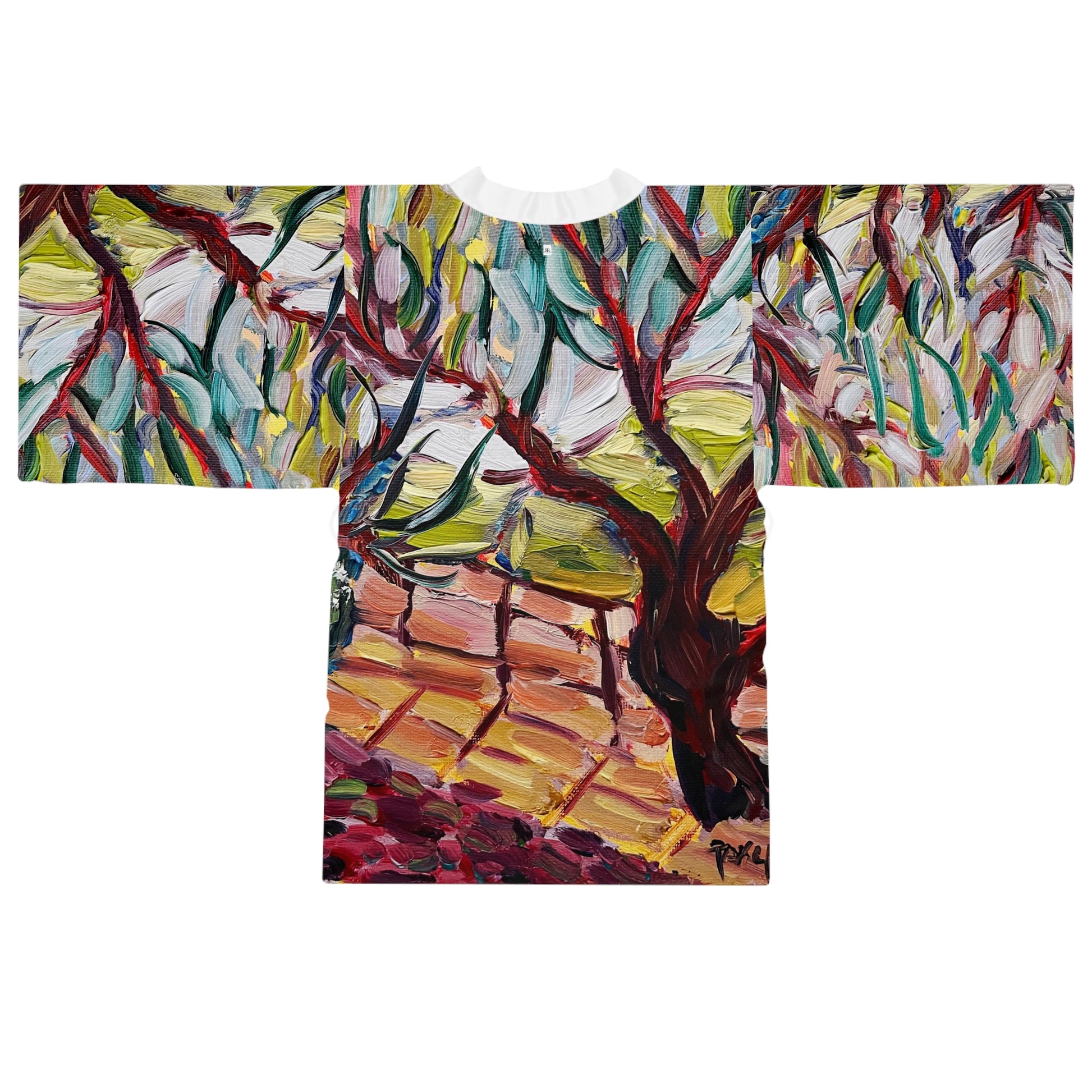 A beautiful kimono robe featuring floral print, giving off a feminine and elegant vibe. Perfect for those who appreciate Japanese aesthetics and want to add a touch of tranquility to their daily routine. Ideal for relaxing at home, getting ready for a special occasion, or as a unique gift for a loved one. Relevant for celebrations like Mother's Day, birthdays, or anniversaries.