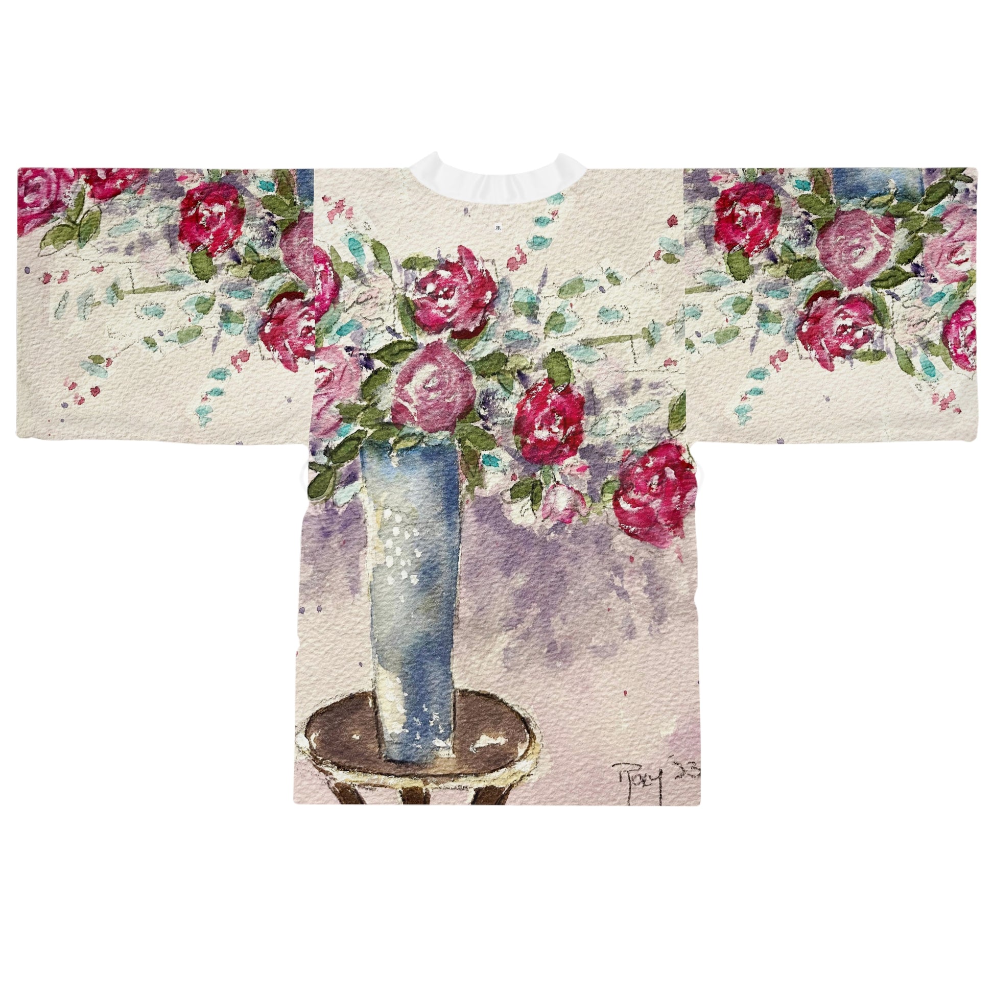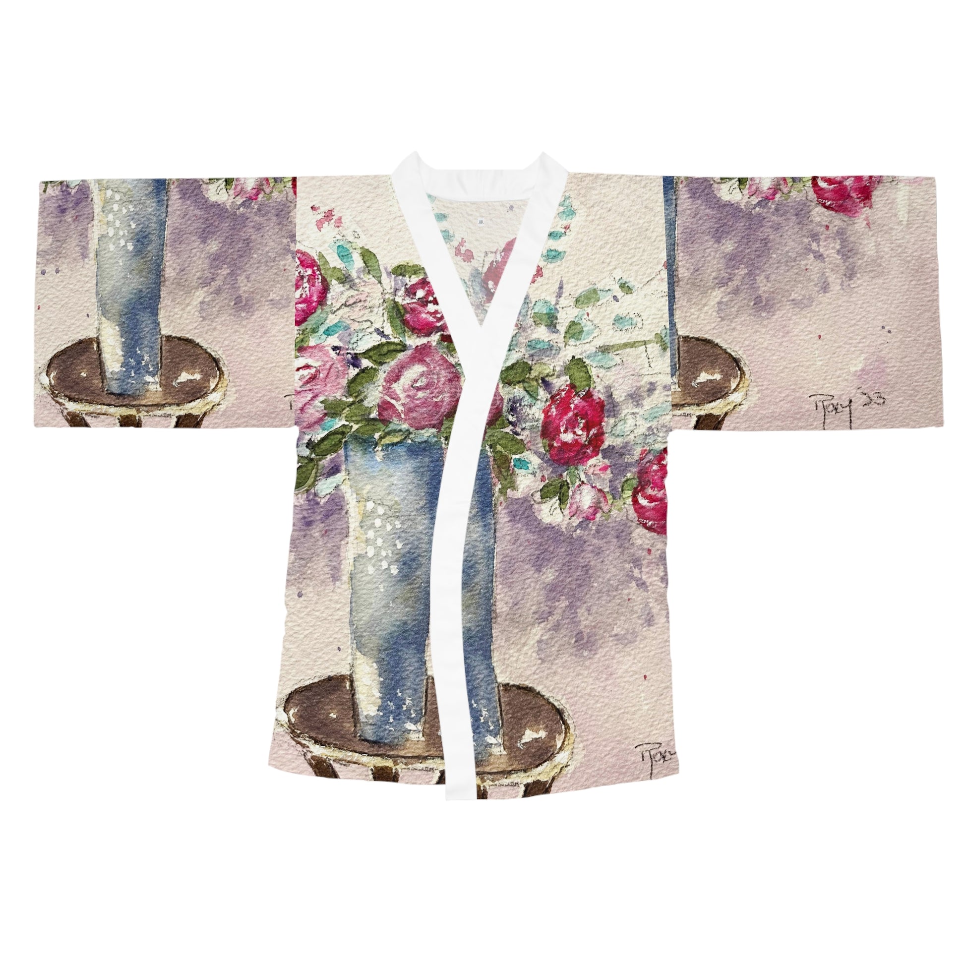 A beautiful kimono robe featuring floral print, giving off a feminine and elegant vibe. Perfect for those who appreciate Japanese aesthetics and want to add a touch of tranquility to their daily routine. Ideal for relaxing at home, getting ready for a special occasion, or as a unique gift for a loved one. Relevant for celebrations like Mother's Day, birthdays, or anniversaries.