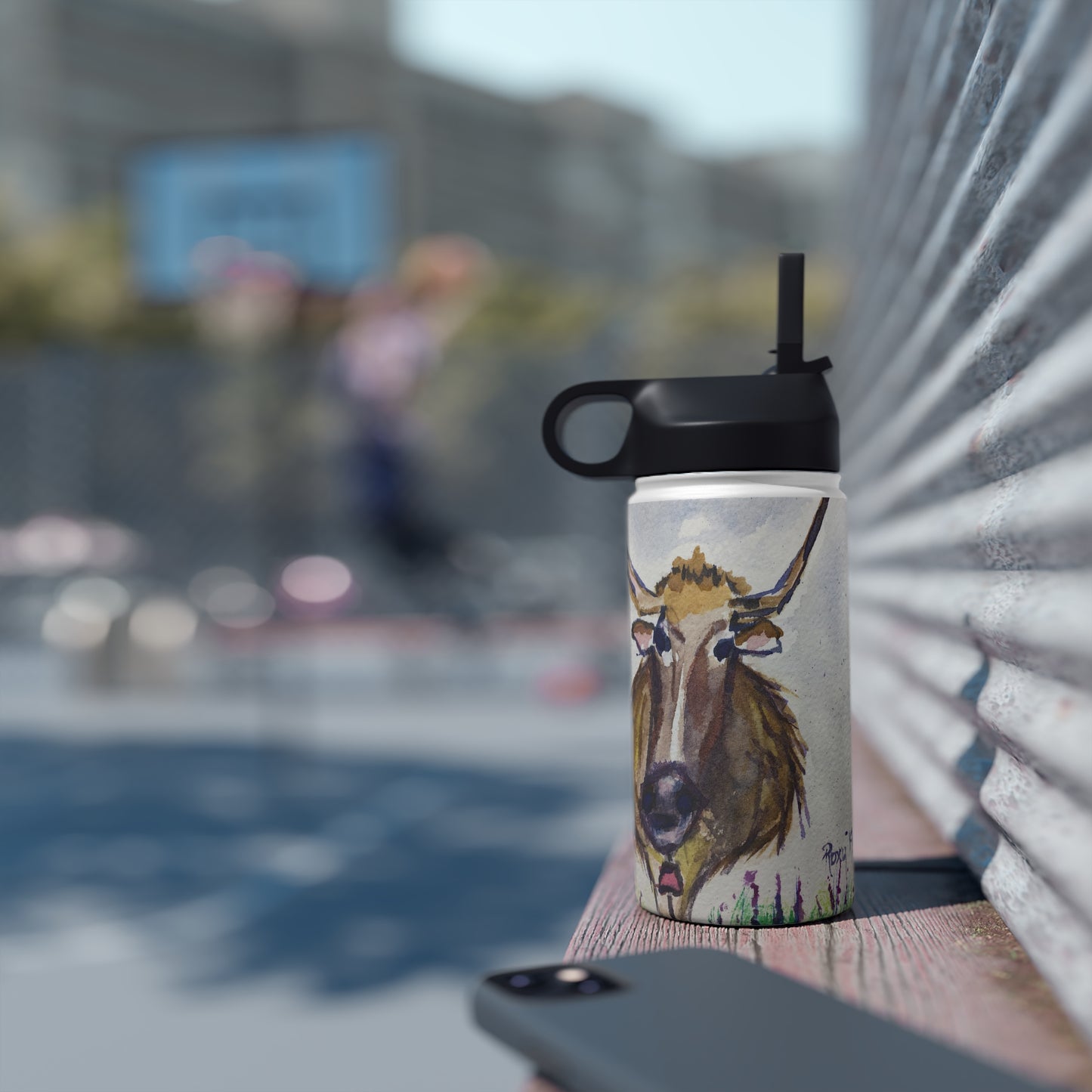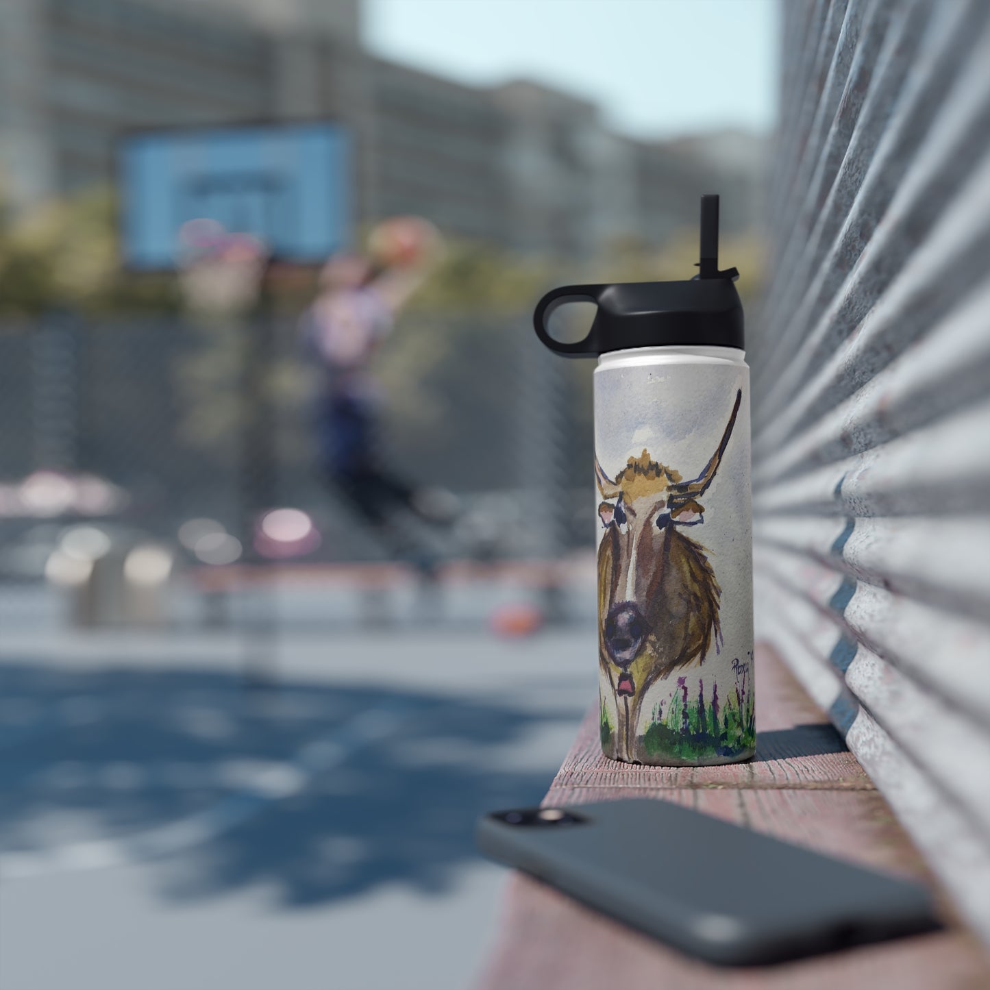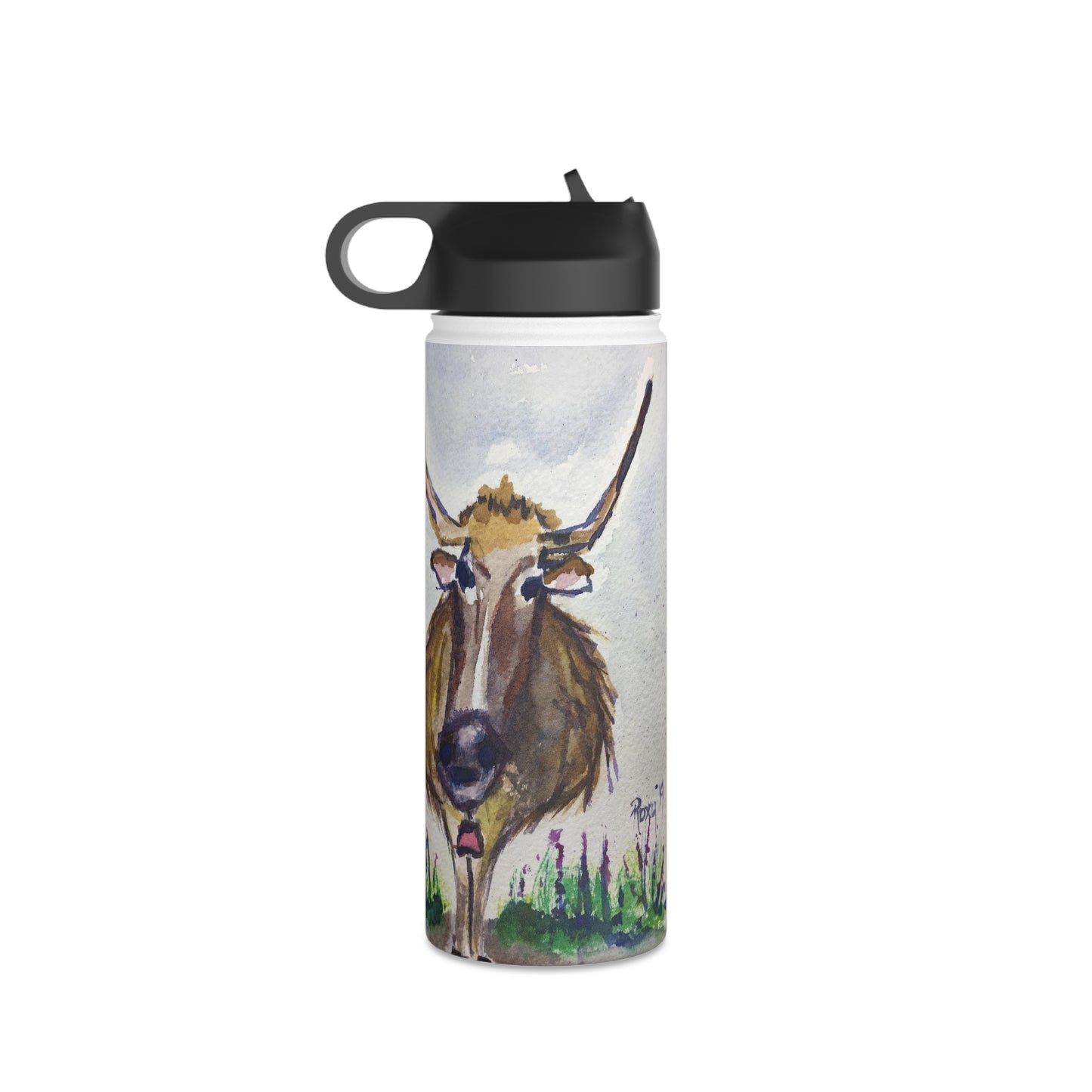 Bouteille d'eau en acier inoxydable Lola Longhorn, couvercle standard