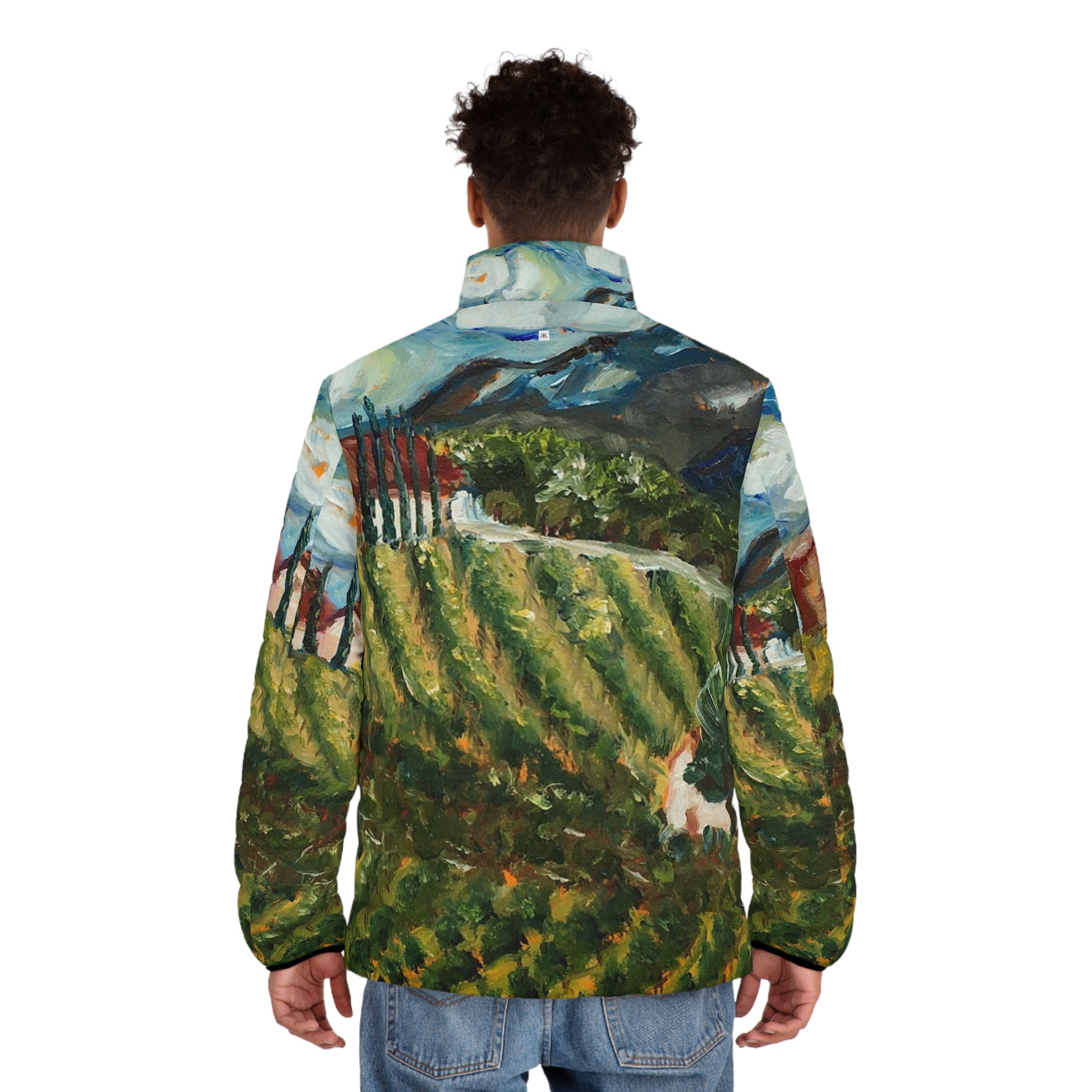 Men's Puffer Jacket - Roxy Rich Art, Unique Bright Colors-Avensole Vineyard