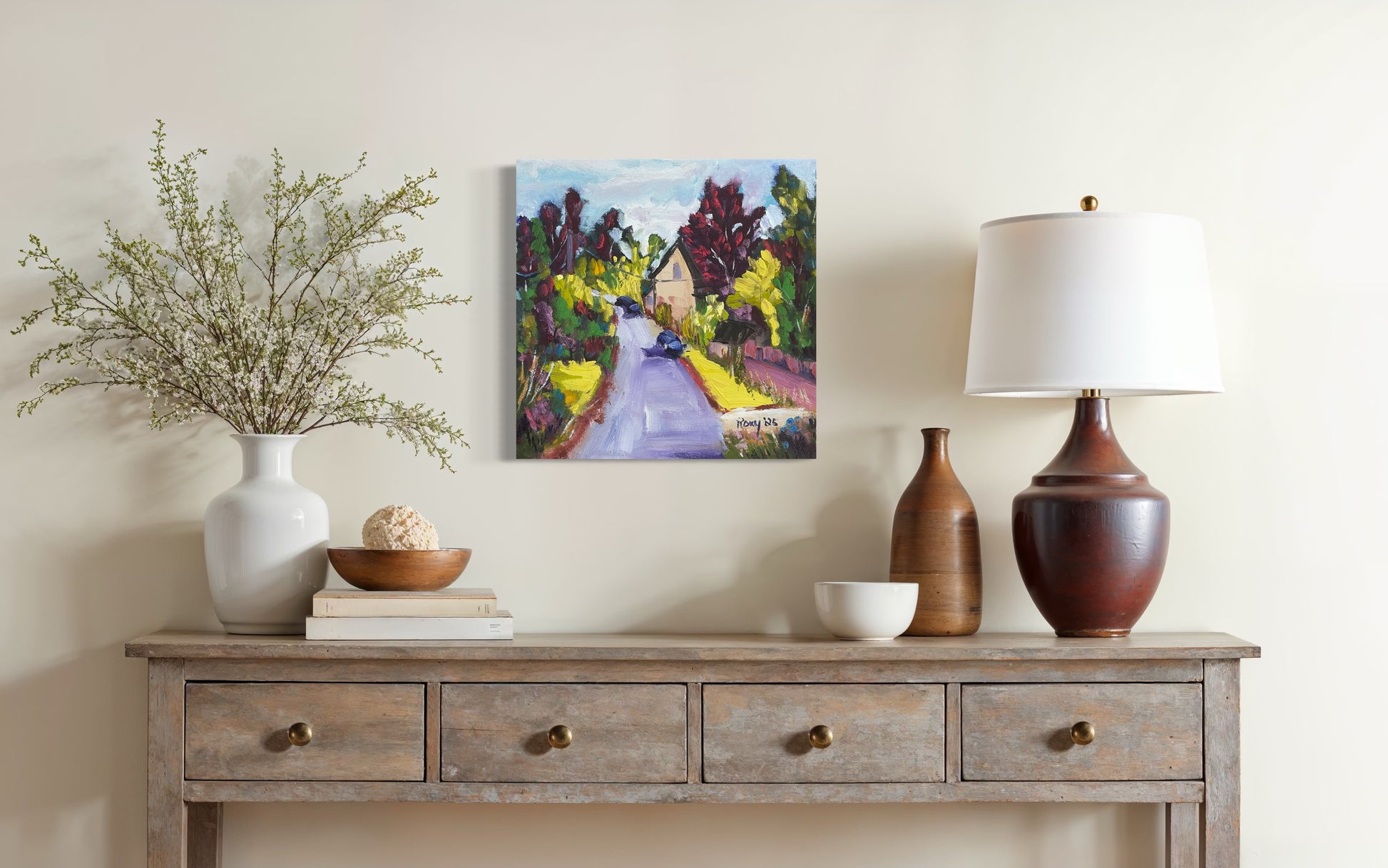 Passing through Whitney-Cotswolds Original Oil Painting 8 x 8 Framed