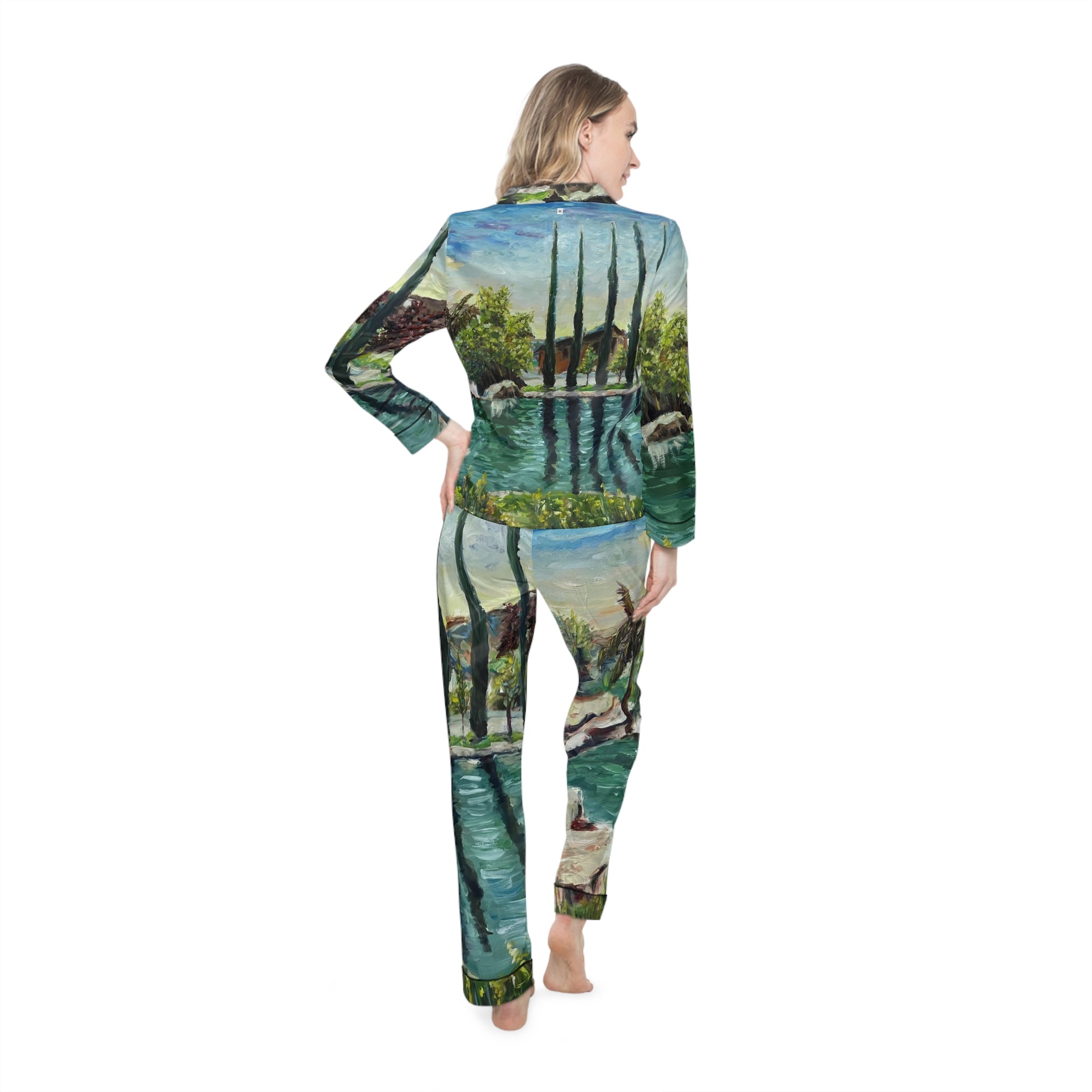 Luxurious satin pajamas perfect for a cozy and stylish lounging experience. Ideal for women who love comfort and elegance. Great for relaxing at home, sleepovers, or special occasions like birthdays or bridal showers.