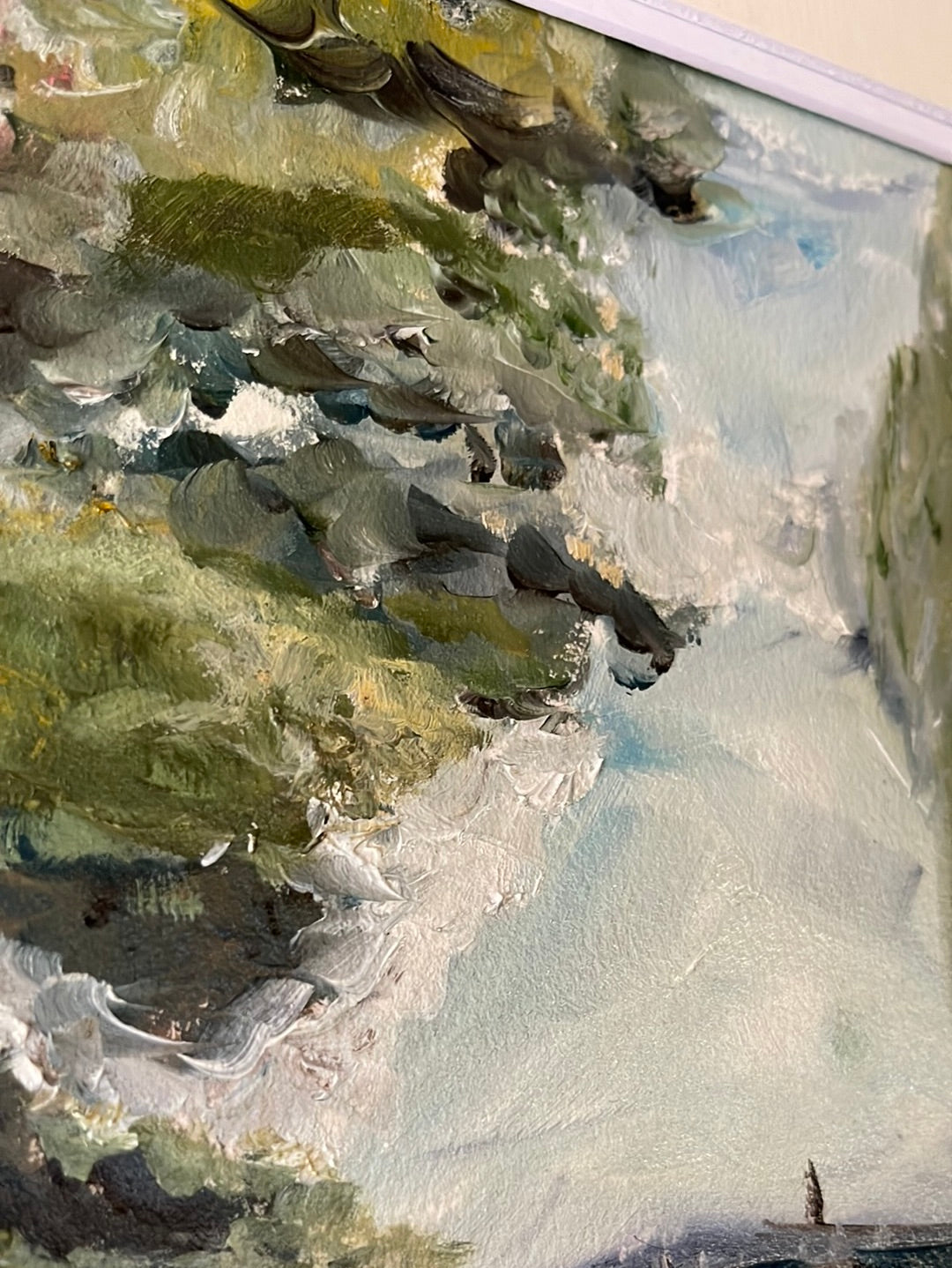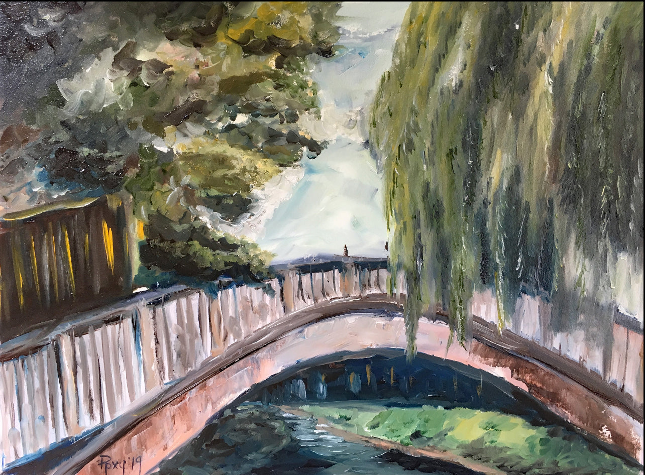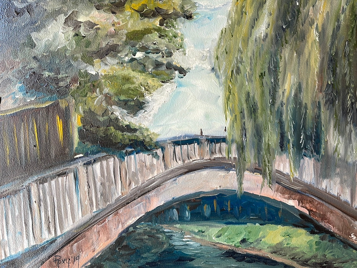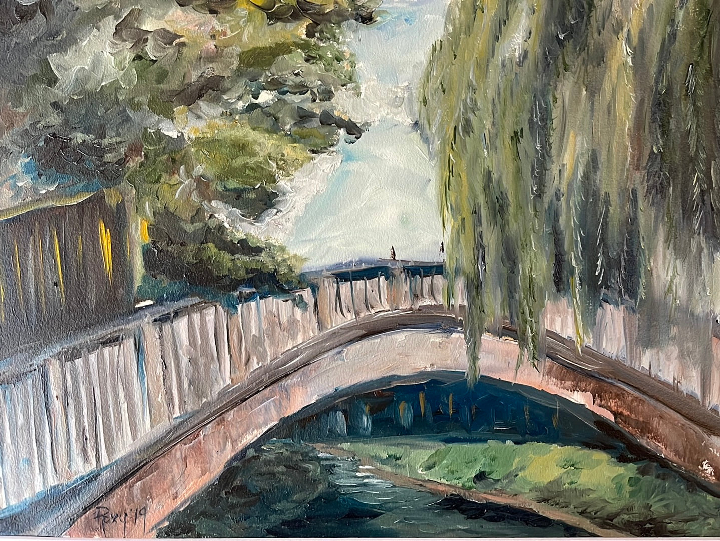 - Lors de ma première visite en Angleterre en 2021, j'ai été enchanté par les routes de campagne et la verdure luxuriante. Un après-midi, nous voyagions de Surrey à Dorking lorsque nous étions sur le point de traverser cette crique. J'ai insisté pour m'arrêter pour photographier cette scène avec le saule pleureur. C'est juste un petit paysage nostalgique. Je ne connais pas le nom de ce pont. Nous nous dirigions vers Dorking depuis Crawley, il s'agit probablement de Shipley Bridge ou de Flanchford Bridge. Même si je peux me tromper. Je l'ai peint à mon retour aux États-Unis. Les tirages sont disponibles via l'onglet "tirages boutique"