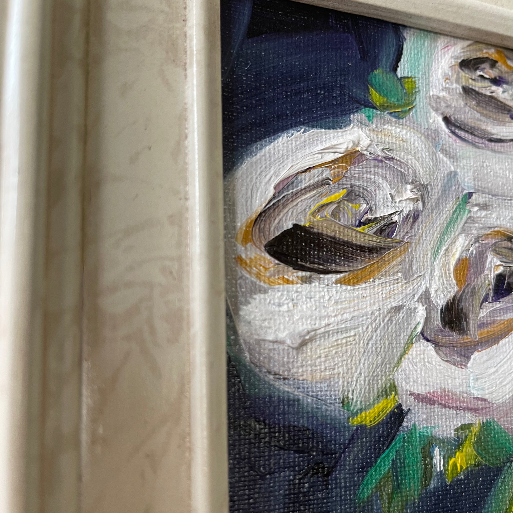 Roses blanches-Peinture à l’huile de roses blanches abstraites modernes originales encadrées