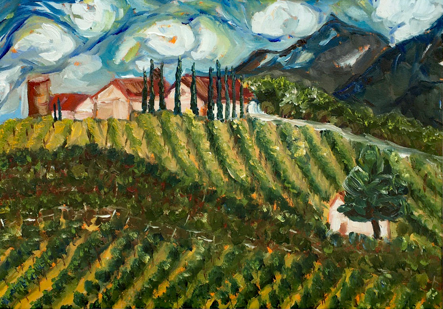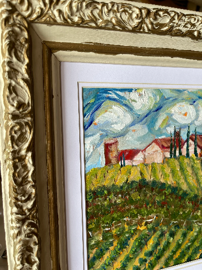 Avensole Vineyard and Winery-Original Contemporary Impressionism Oil Landscape Painting Framed