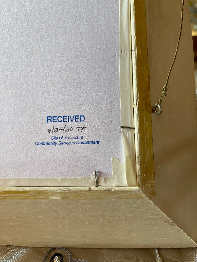 - Matted and framed in a distressed shabby-chic repurposed vintage white and gold wooden frame