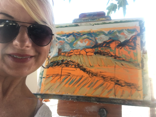 - Painted en plein air under a tree next to the barn at Maurice Carrie Winery Temecula, California for the Ralph Love Plein air festival and competition