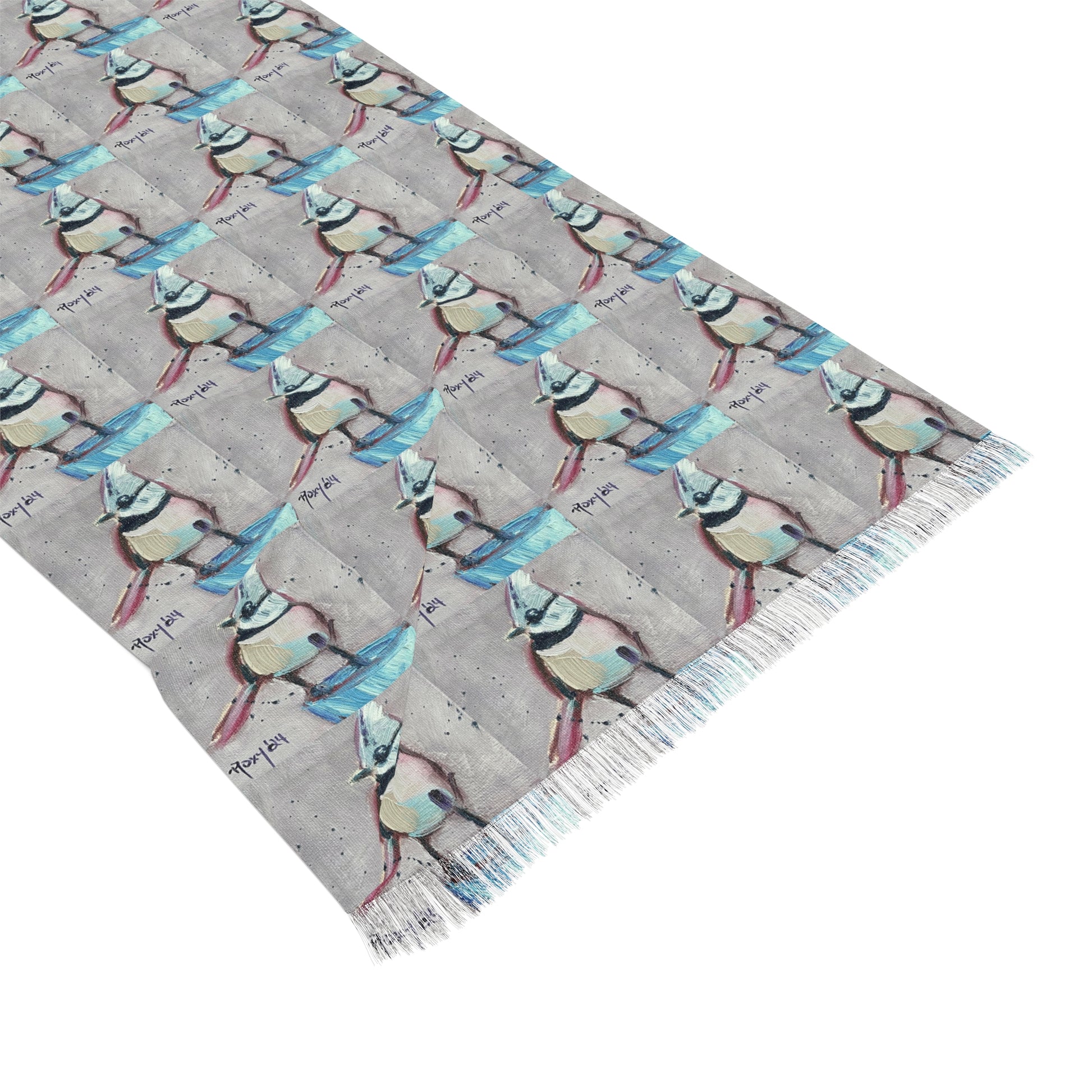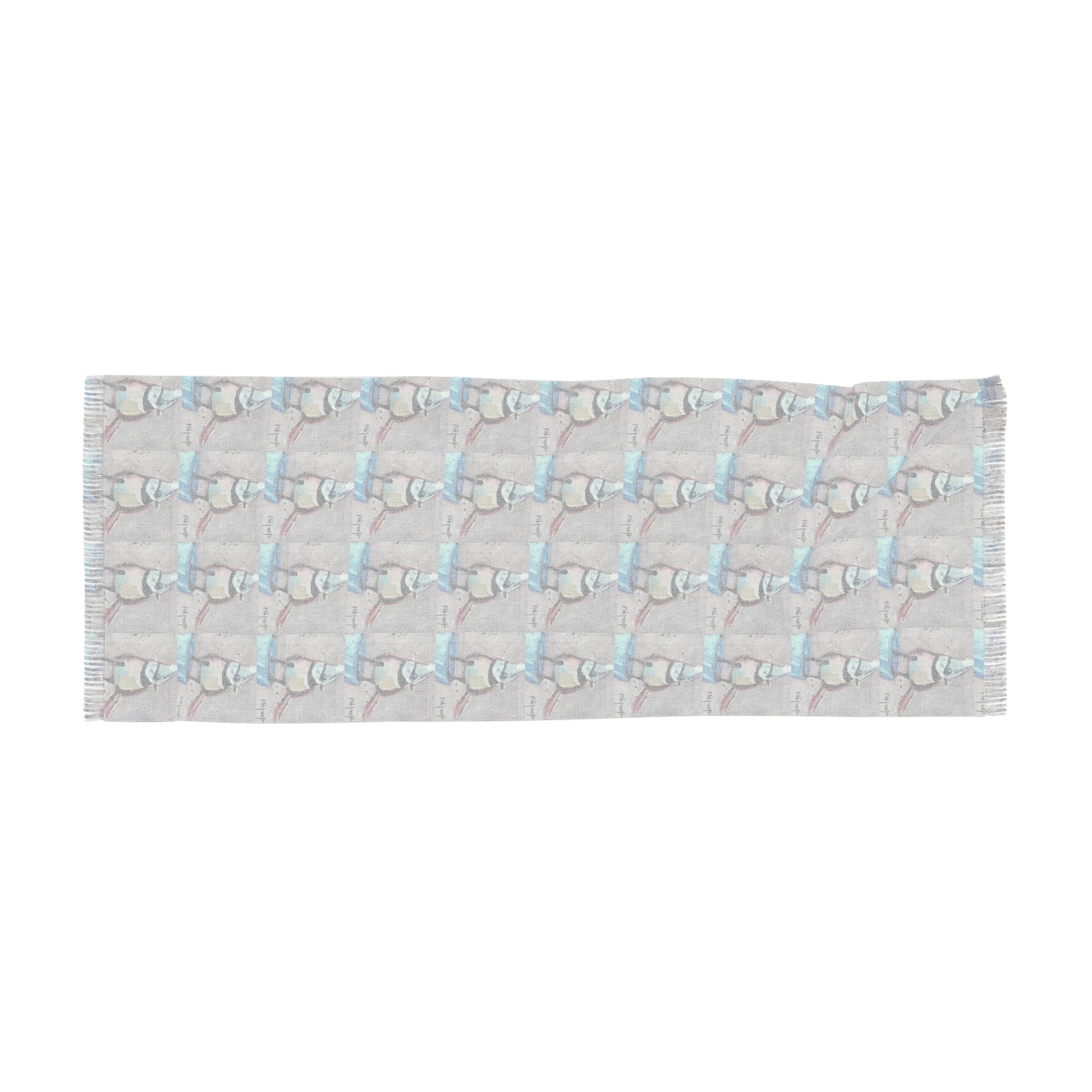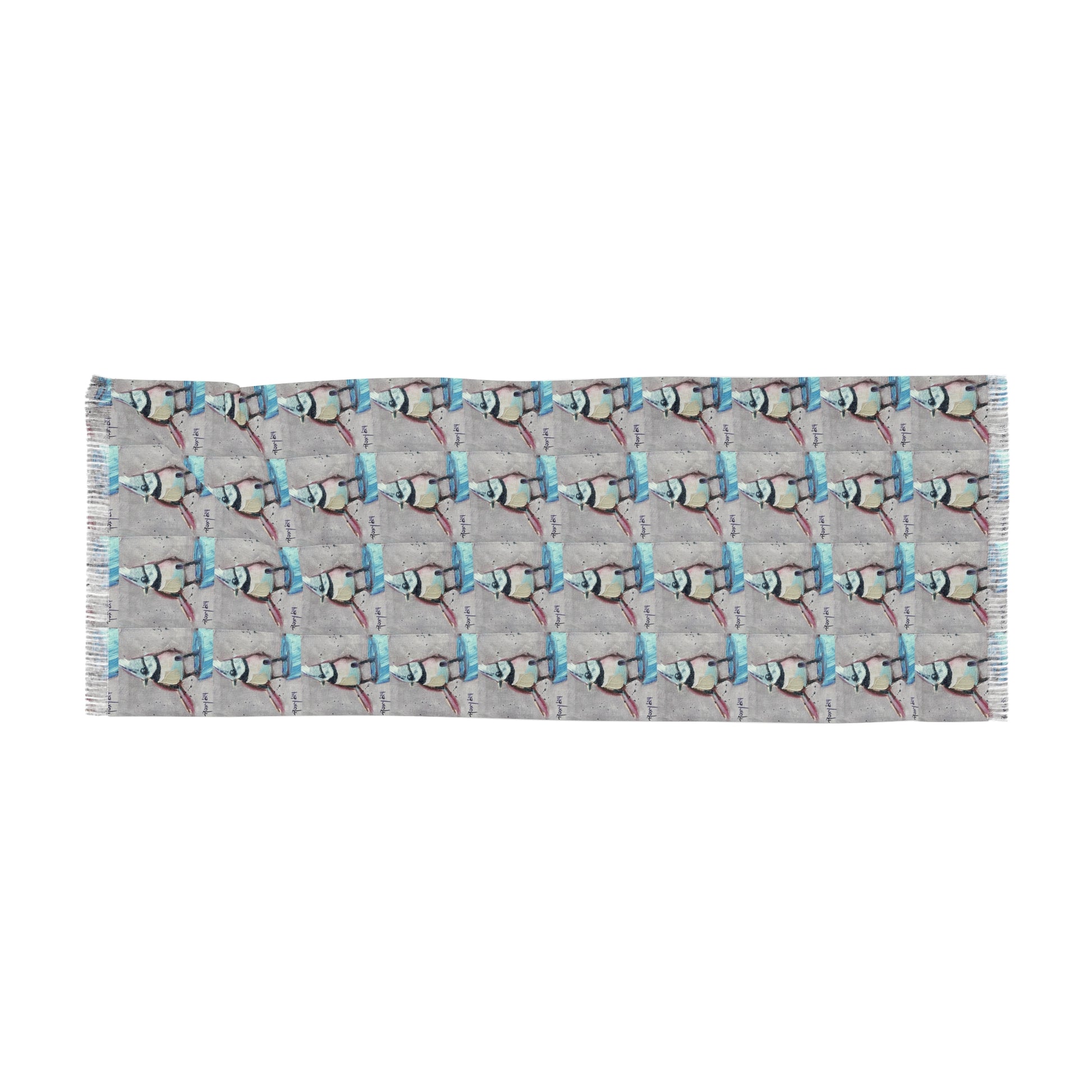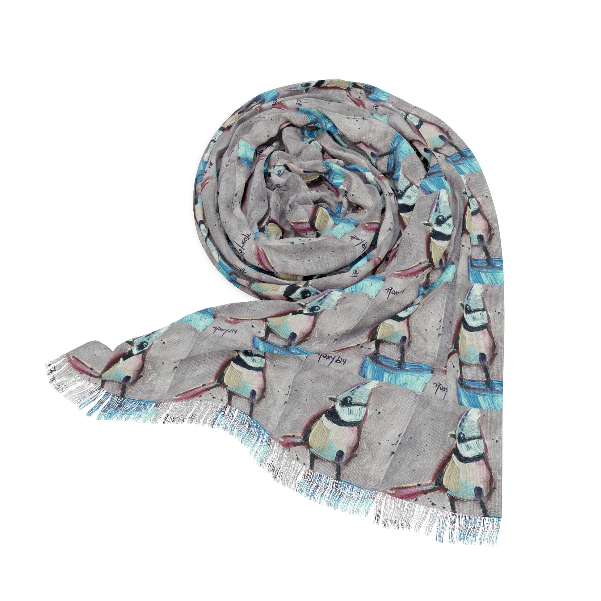 Colorful Scarf — Artistic Lightweight Neck Wrap- Adorable Crested Tit Bird
