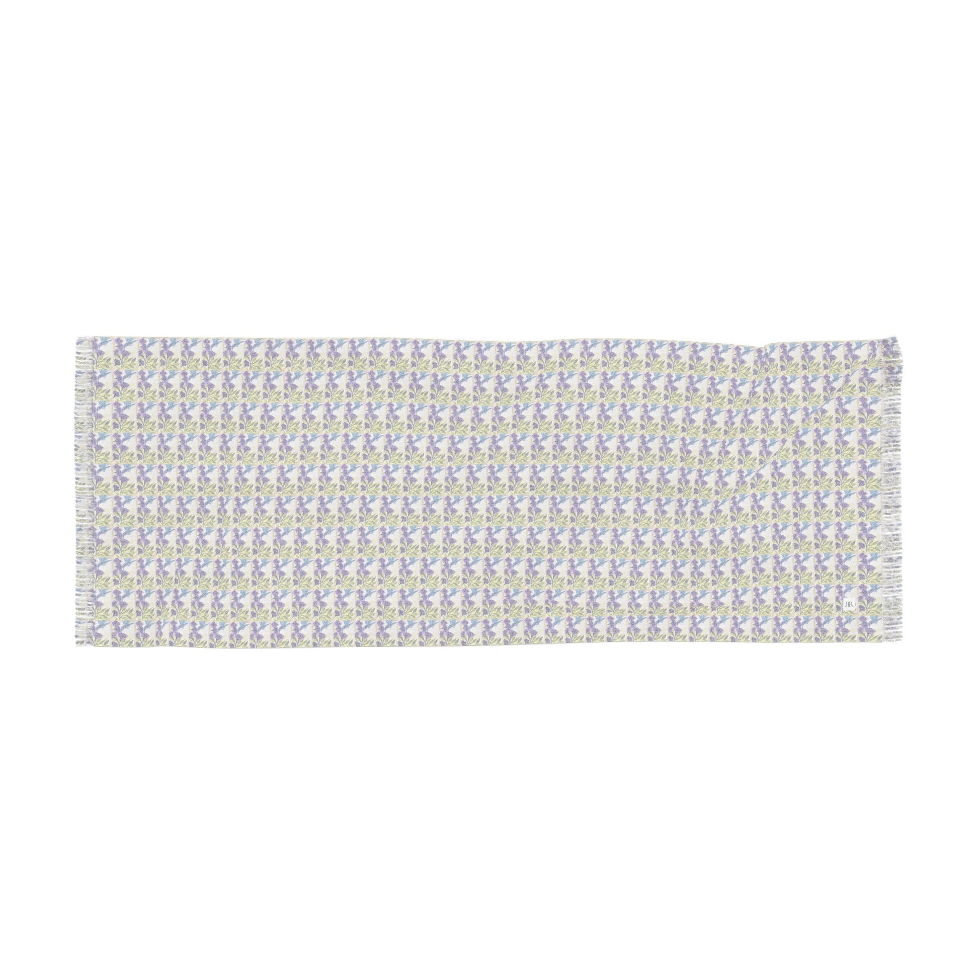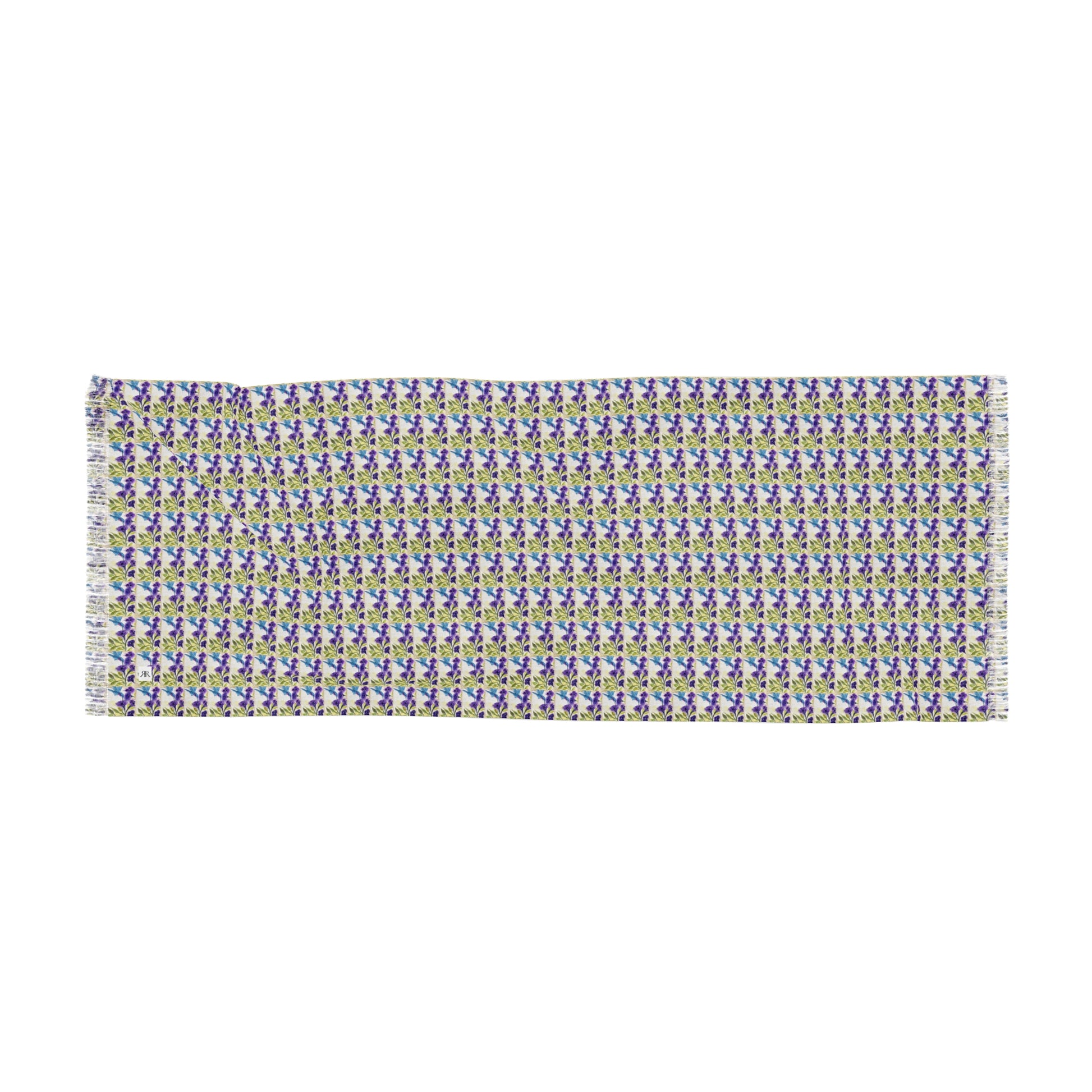 Colorful Scarf — Artistic Lightweight Neck Wrap- Hummingbird with Purple Flowers