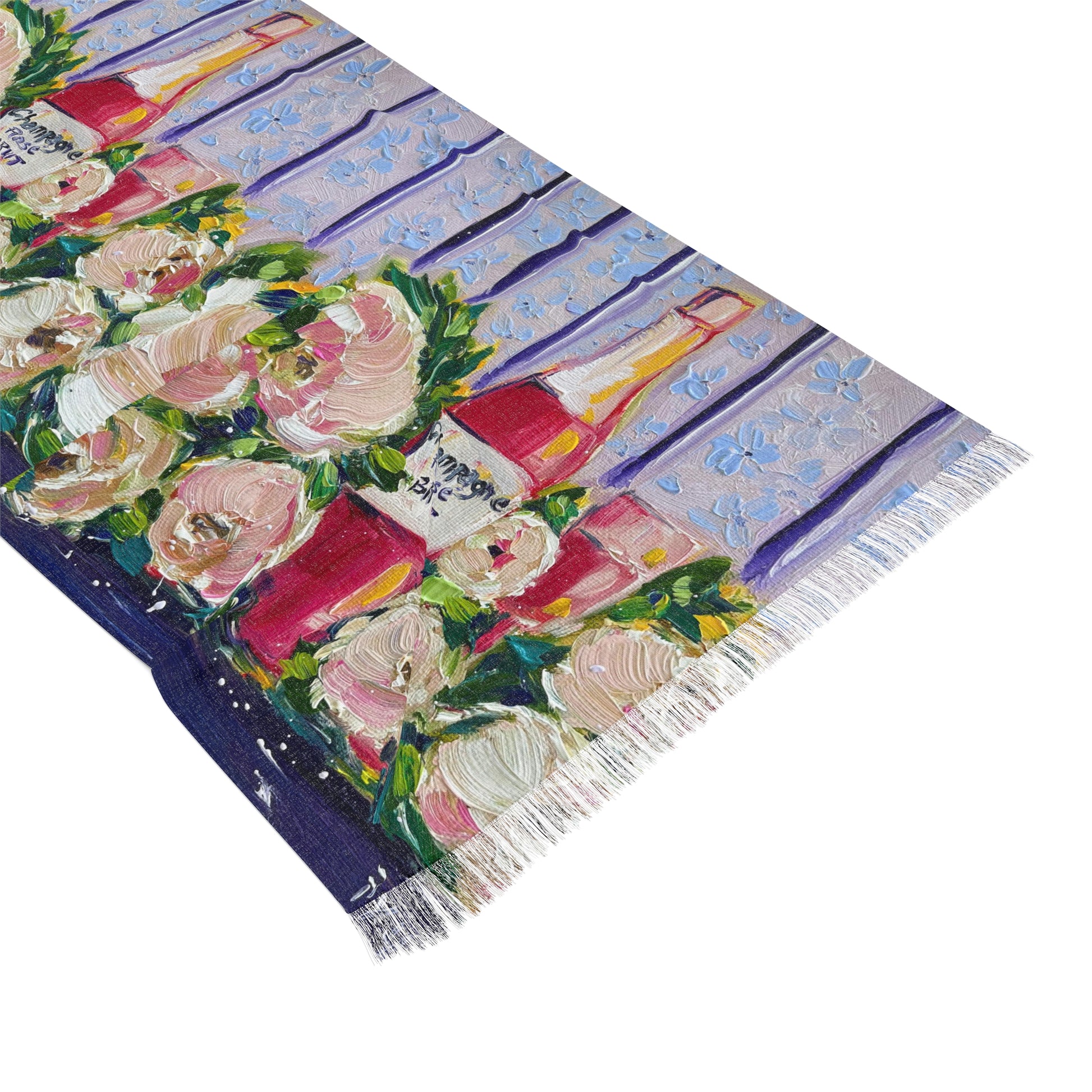 Colorful Scarf — Artistic Lightweight Neck Wrap- Pink Champagne and Peonies
