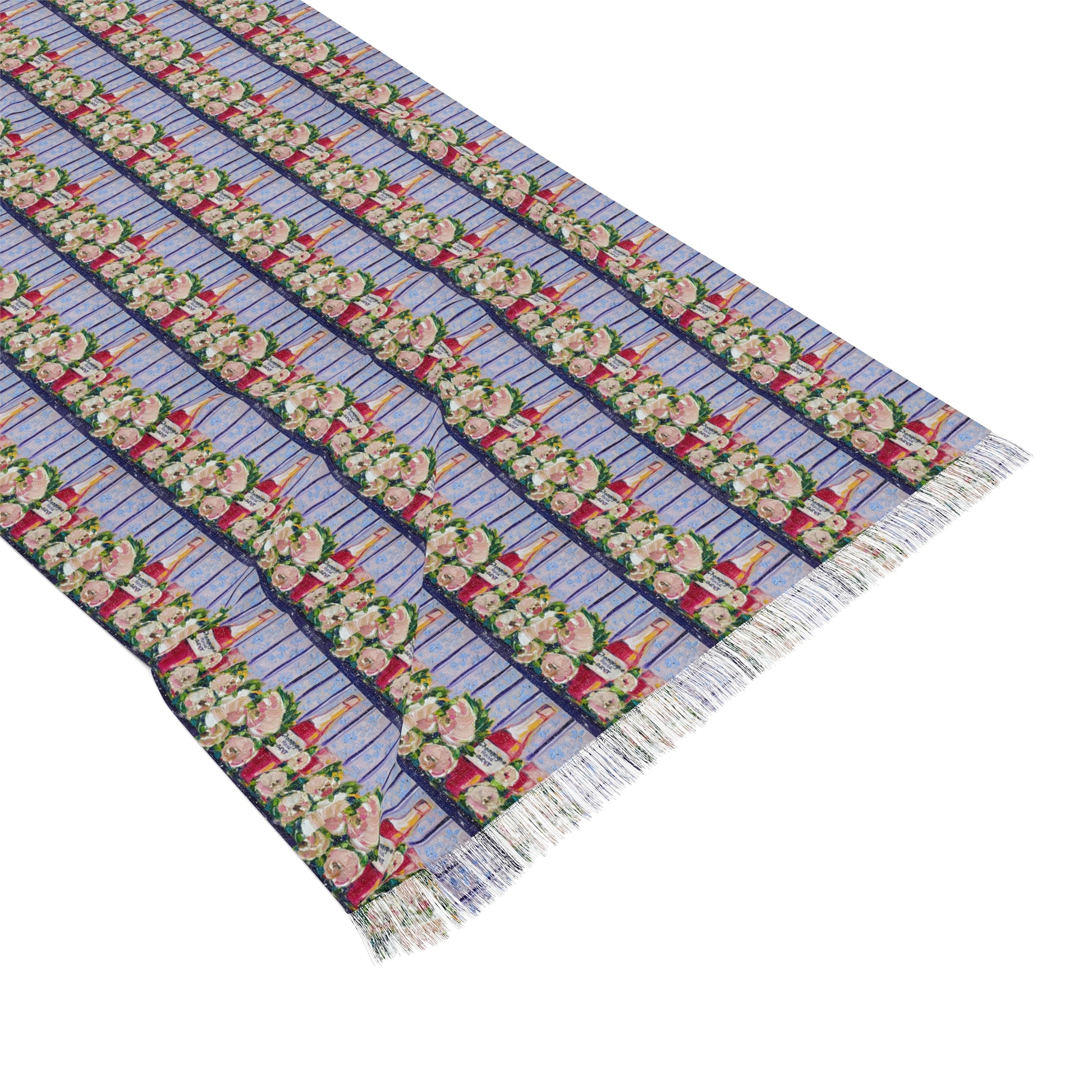 Colorful Scarf — Artistic Lightweight Neck Wrap- Pink Champagne and Peonies-Small Print