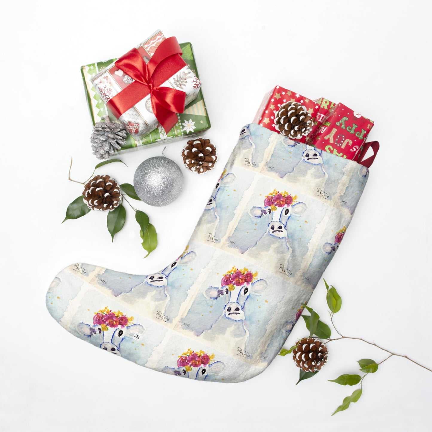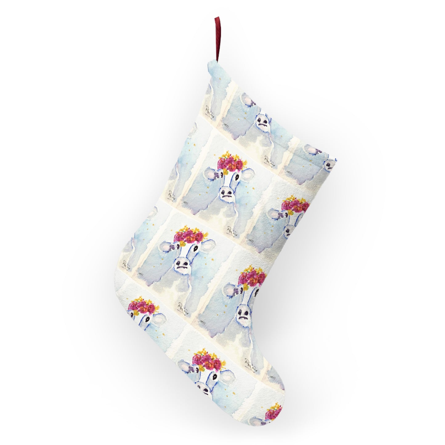 Cutest Ever Cow with Flower Crown Cow Print Christmas Stocking