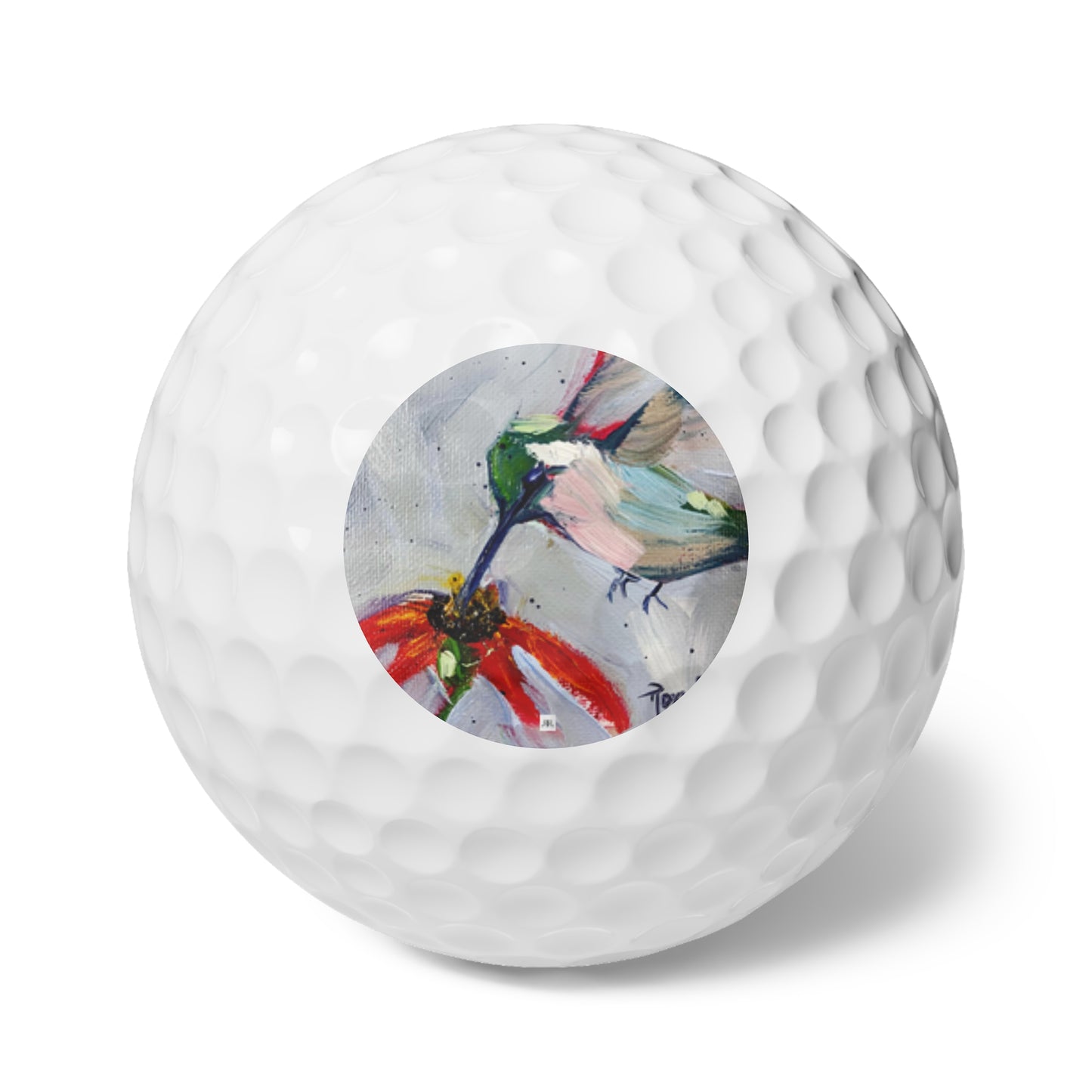 Golf Balls, 6pcs-Hummingbird at a Coneflower