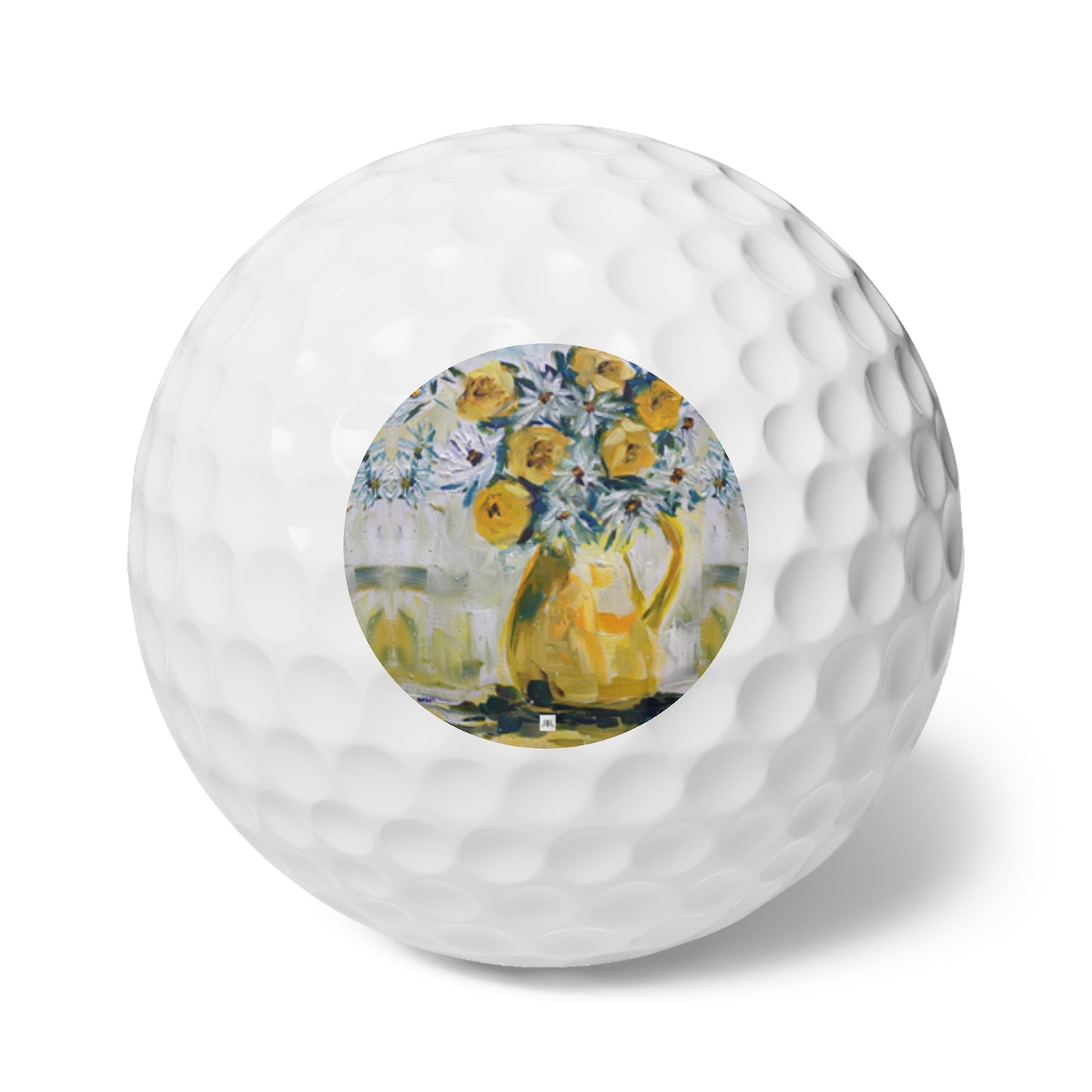 Golf Balls, 6pcs-Yellow Roses and Daisies