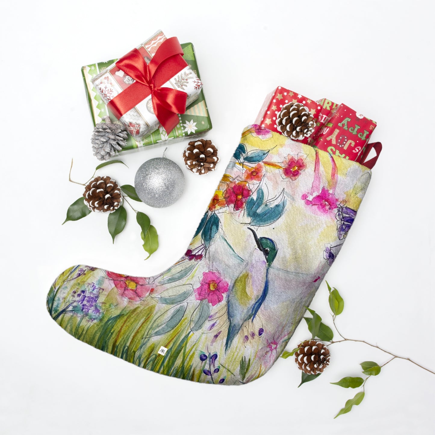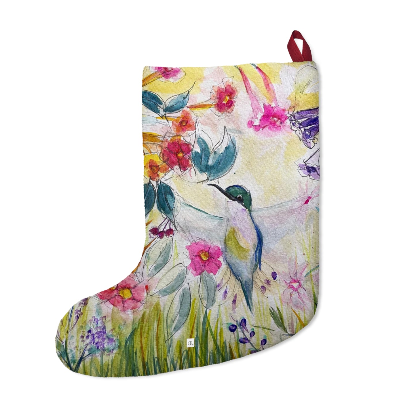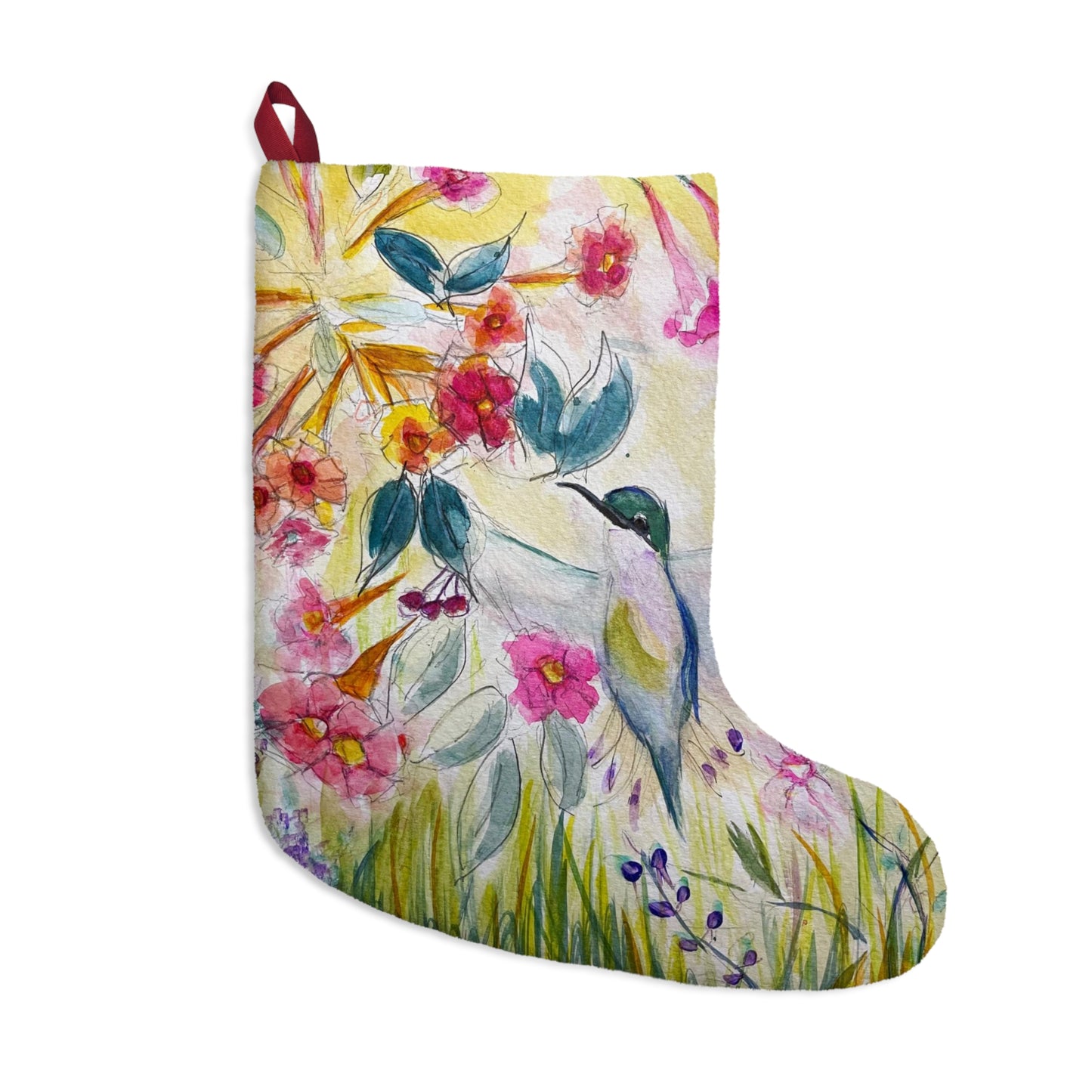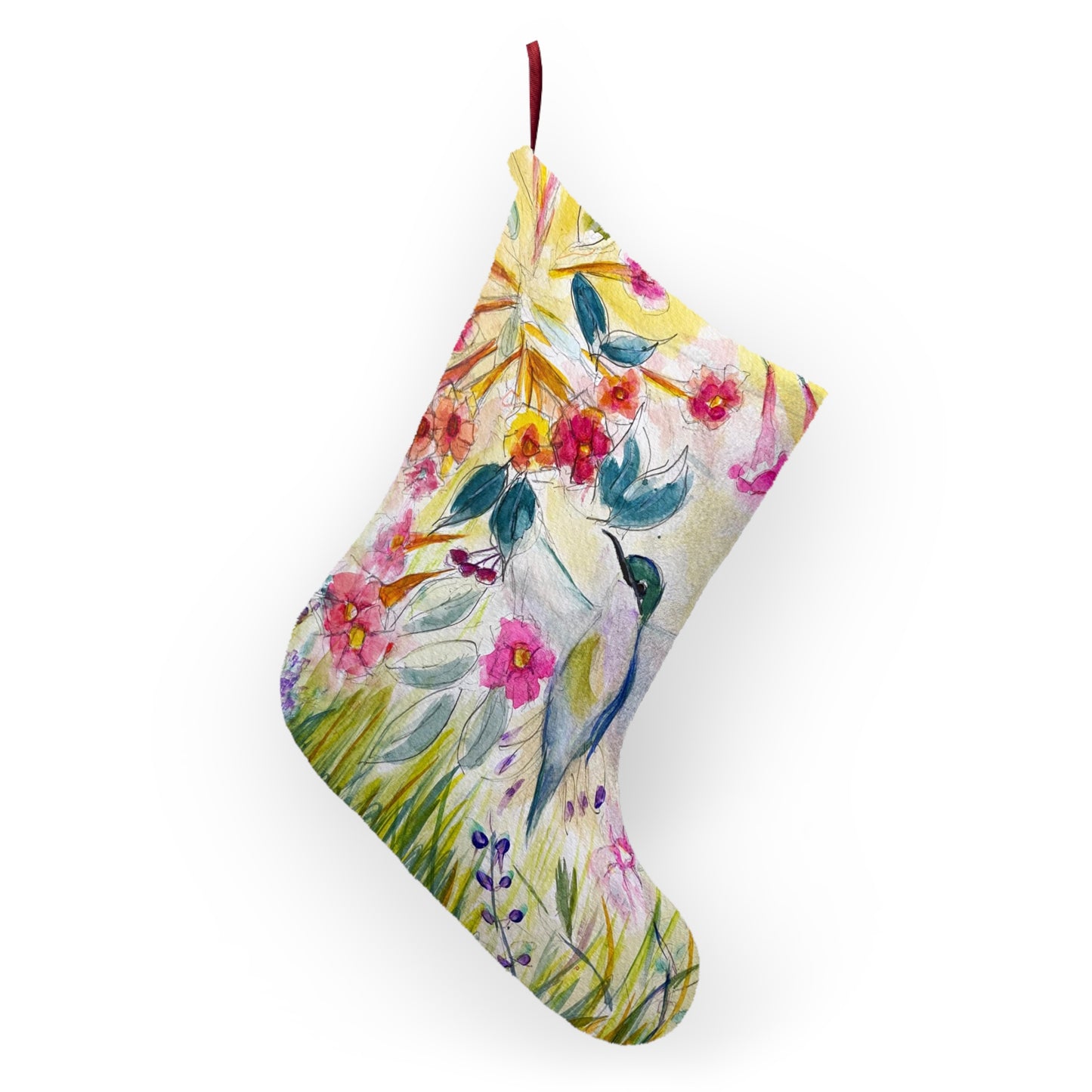 Hummingbird in a Tube Flower Garden Colorful Christmas Stocking